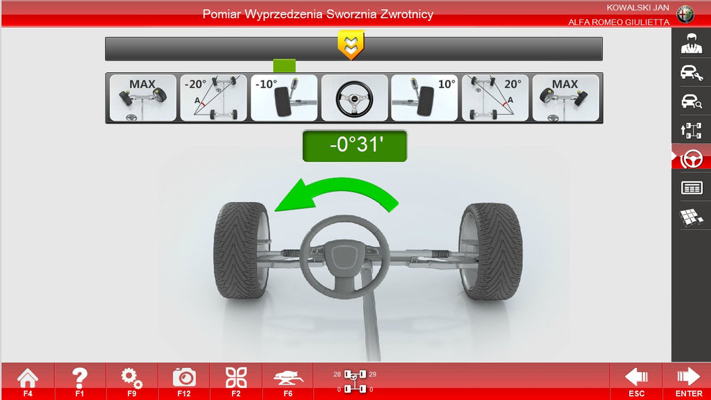 Softvér umožňuje uloženie výsledkov merania počas zdvíhania vozidla, ako aj nastavovanie uhlov bez nasadenej pneumatiky pomocou špeciálnych adaptérov.