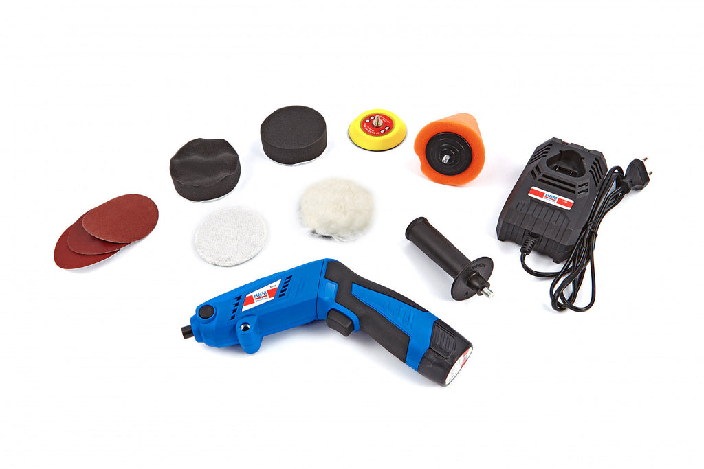 AKUMULÁTOROVÁ LEŠTIČKA 75 MM je dodávaná spolu s 3x brúsnym papierom (K240, K320, K600), 1 x podložka 75 mm, 1 x leštiaci penový kotúč 75 mm, 1 x leštiaci kotúč 75 mm, 1 x mäkký kotúč 75 mm, 1 x penový kotúč a 1 x kužeľový penový kotúč.