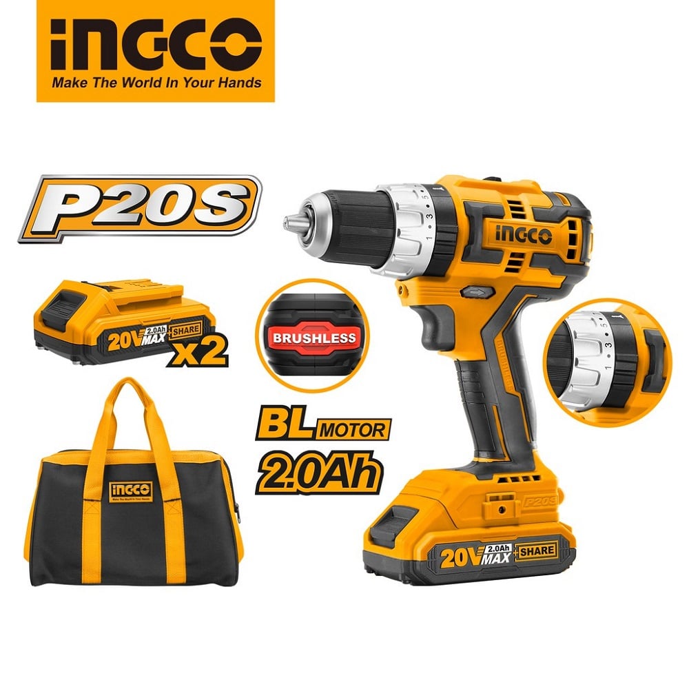 VRTÁČKA A SKRUTKOVAČ S PRÍKLEPOM, S 2 AKUMULÁTORMI 20V 2Ah INGCO je vybavená bezuhlíkovým motorom (brushless) napájaným na 20V. Táto disponuje prevodovkou s 2 stupňami. Rýchlosť otáčania až do 1900 otáčok za minútu a frekvencia príklepu 22500 úderov za minútu. Maximálny krútiaci moment 60 Nm a 23+1+1 nastavení krútiaceho momentu umožňujú presné prispôsobenie sa typu materiálu a povahe aplikácie.