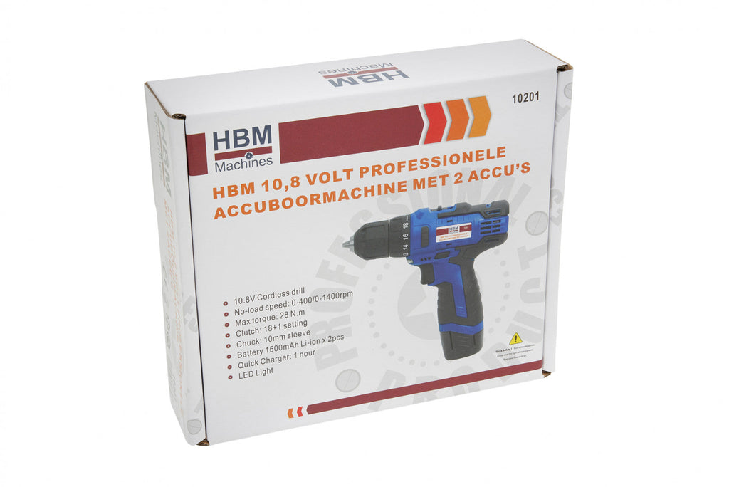 Akumulátorová vŕtačka - skrutkovač 28Nm, 2 akumulátory 10,8V 1500mAh HBM
