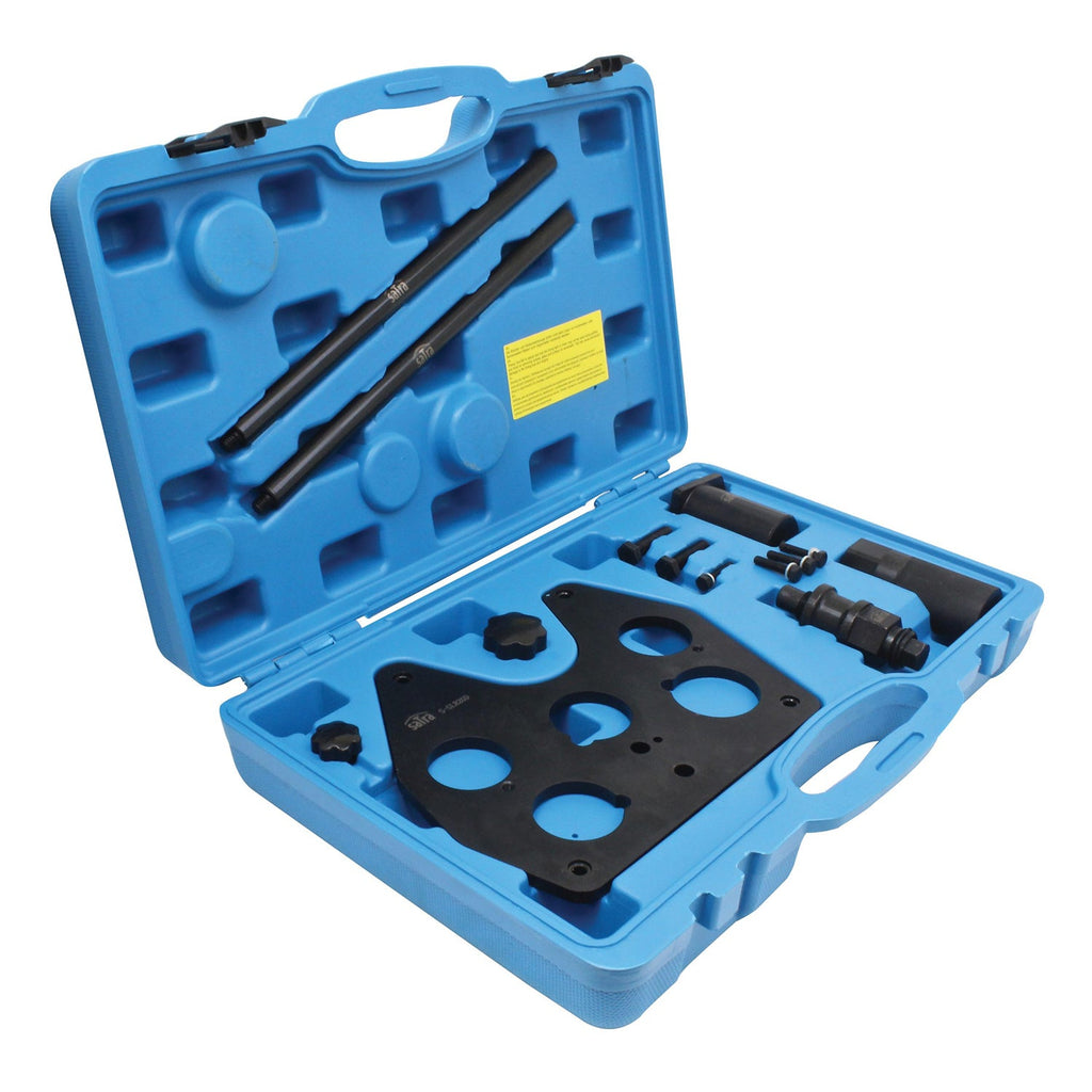 TENTO BLOKÁTOR VYVAŽOVACIEHO HRIADU JAGUAR LAND ROVER 2.0 DIESEL je určený na správnu montáž a nastavenie vyvažovacieho hriadeľa poháňaného ozubenými kolesami v dieselových motoroch Land Rover a Jaguar 2.0 AJ200. Súprava obsahuje všetky diely potrebné na nastavenie vyvažovacích hriadeľov.