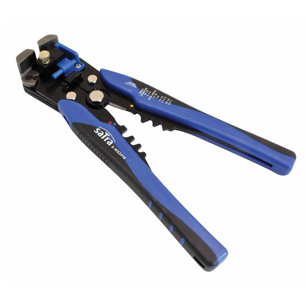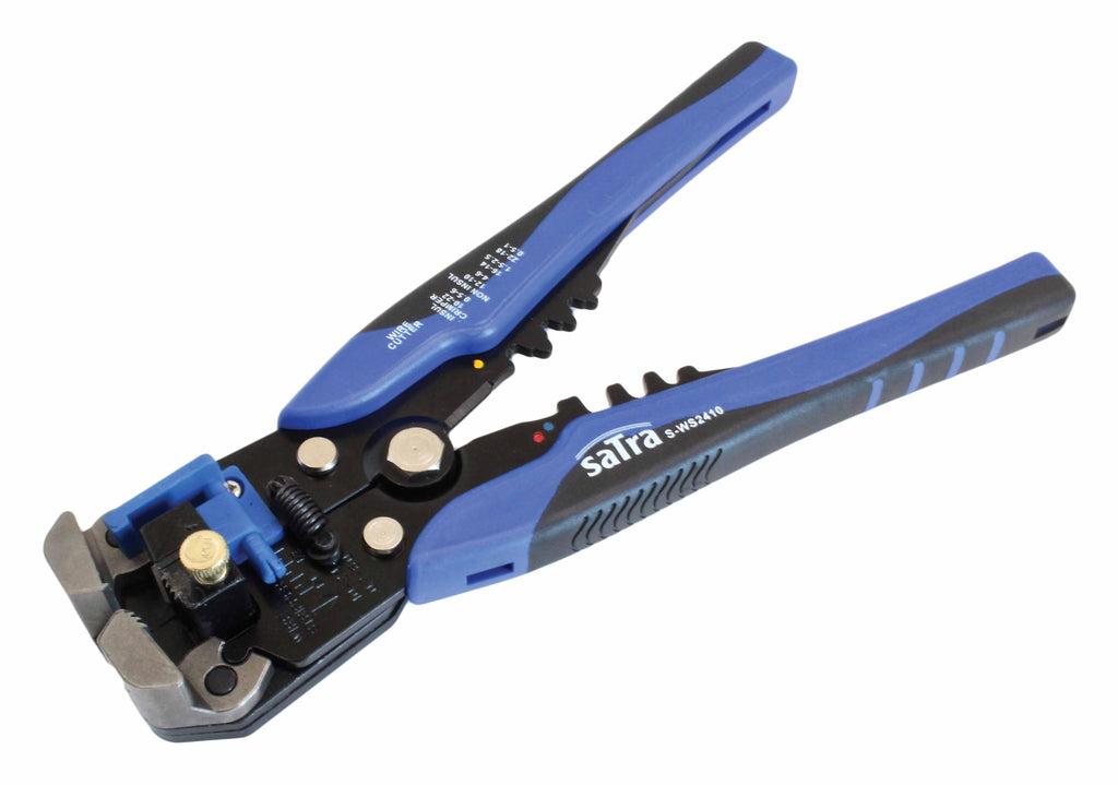 Tento AUTOMATICKÝ KLIEŠŤ NA LISOVANIE, ODIZOLOVANIE A STRIHANIE ELEKTRICKÝCH KÁBLOV 0.2–6.0 mm² SATRA je multifunkčný nástroj určený na presné odizolovanie, krimpovanie a strihanie elektrických vodičov s prierezom od 0.2 do 6.0 mm². Je kompatibilný s koncovkami typu 24–10 AWG, čo ho robí ideálnym pre precízne elektroinštalačné práce. Kliešte sú vybavené mikrometrickým nastavovacím kolieskom, ktoré umožňuje jemné doladenie tlaku podľa typu kábla.