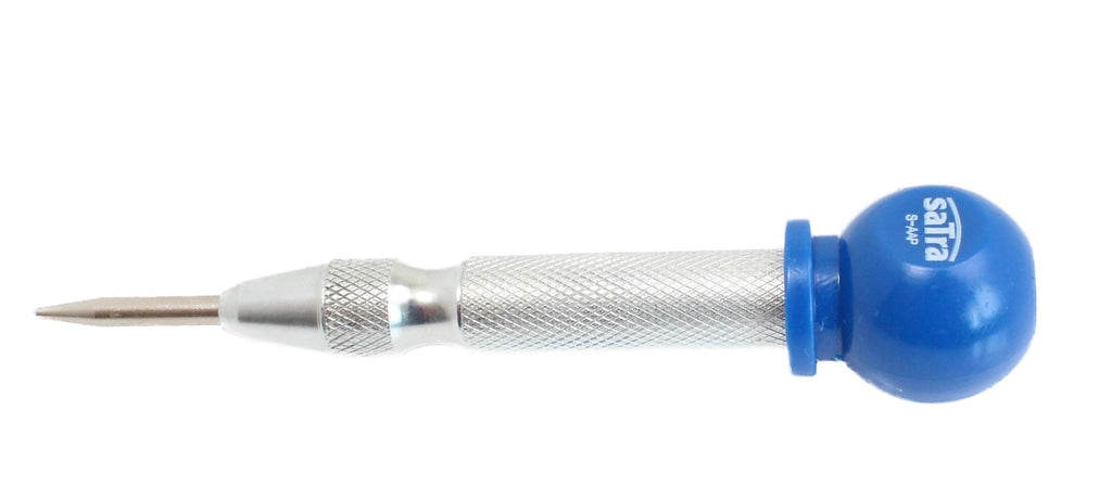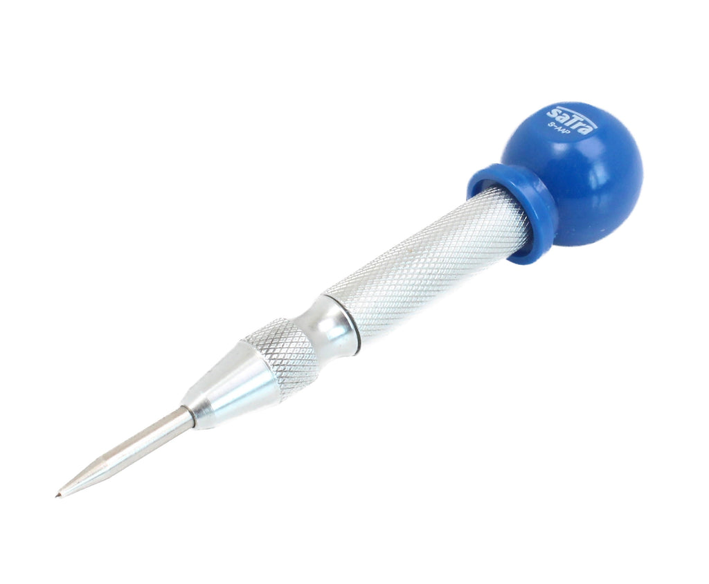 TENTO AUTOMATICKÝ CENTROVACÍ DORAZ S RUKOVÄŤOU je určený na označovanie bodov pred vŕtaním. Umožňuje ľahko vytvoriť viac otvorov do dreva, kovu alebo plastu. Kryt uvoľňuje pružinu, aby udrela, keď je automatický razník stlačený. Sila úderu sa dá nastaviť otáčaním moletky. Závisí to od použitého materiálu alebo od hĺbky značky na povrchu.