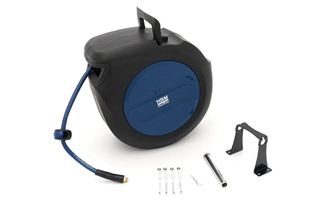 Automatický samonavíjací bubon s hadicou na stlačený vzduch, aretáciou a 180° otočným držiakom HBM