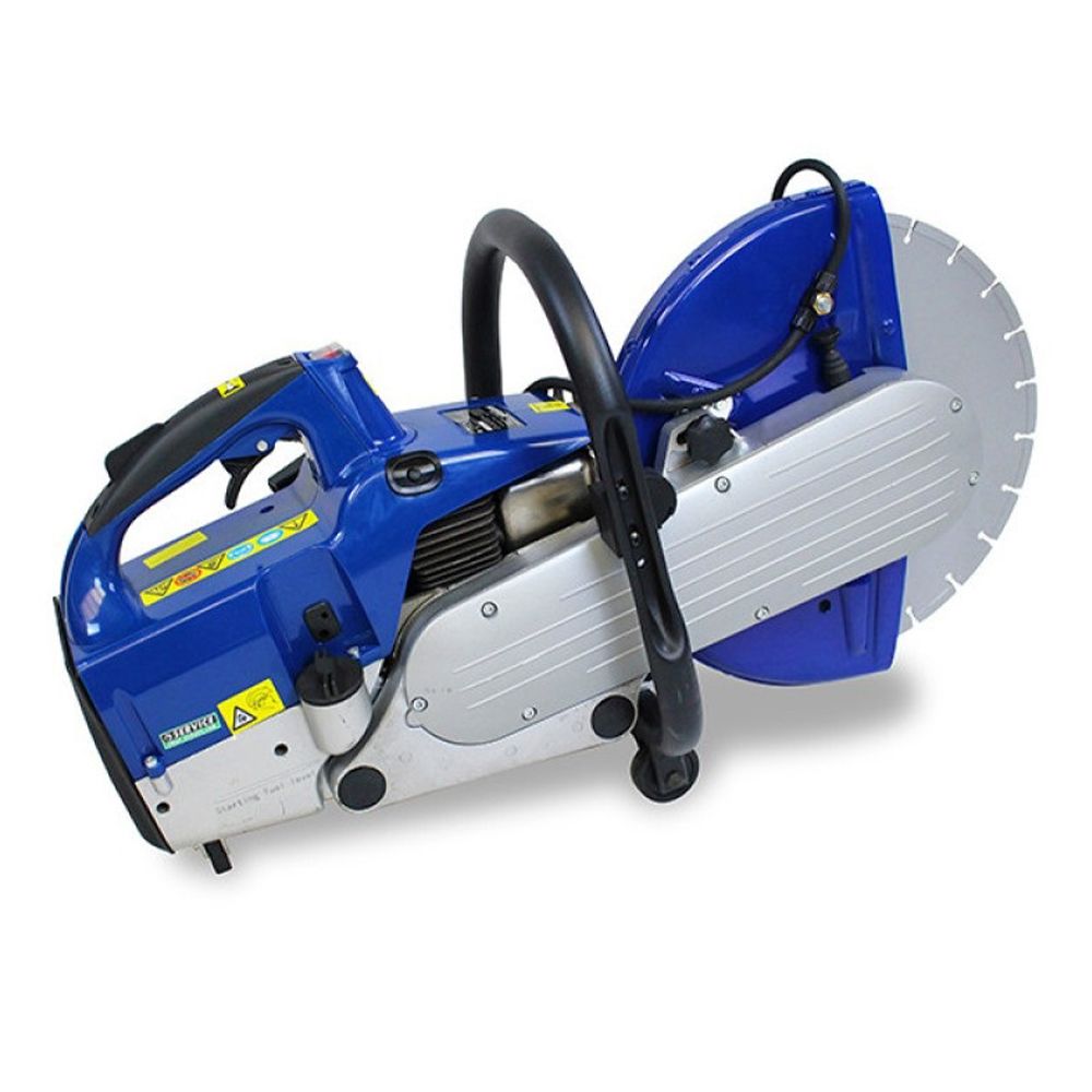 BENZÍNOVÁ REZAČKA S MOTOROM 4HP HYUNDAI je vybavená kotúčom s priemerom 350 mm, ktorým je možné rýchlo rezať stavebné materiály s hrúbkou až do 115 mm. Je vybavená ergonomickou rukoväťou, ktorá umožňuje jednoduché vyváženie stroja.