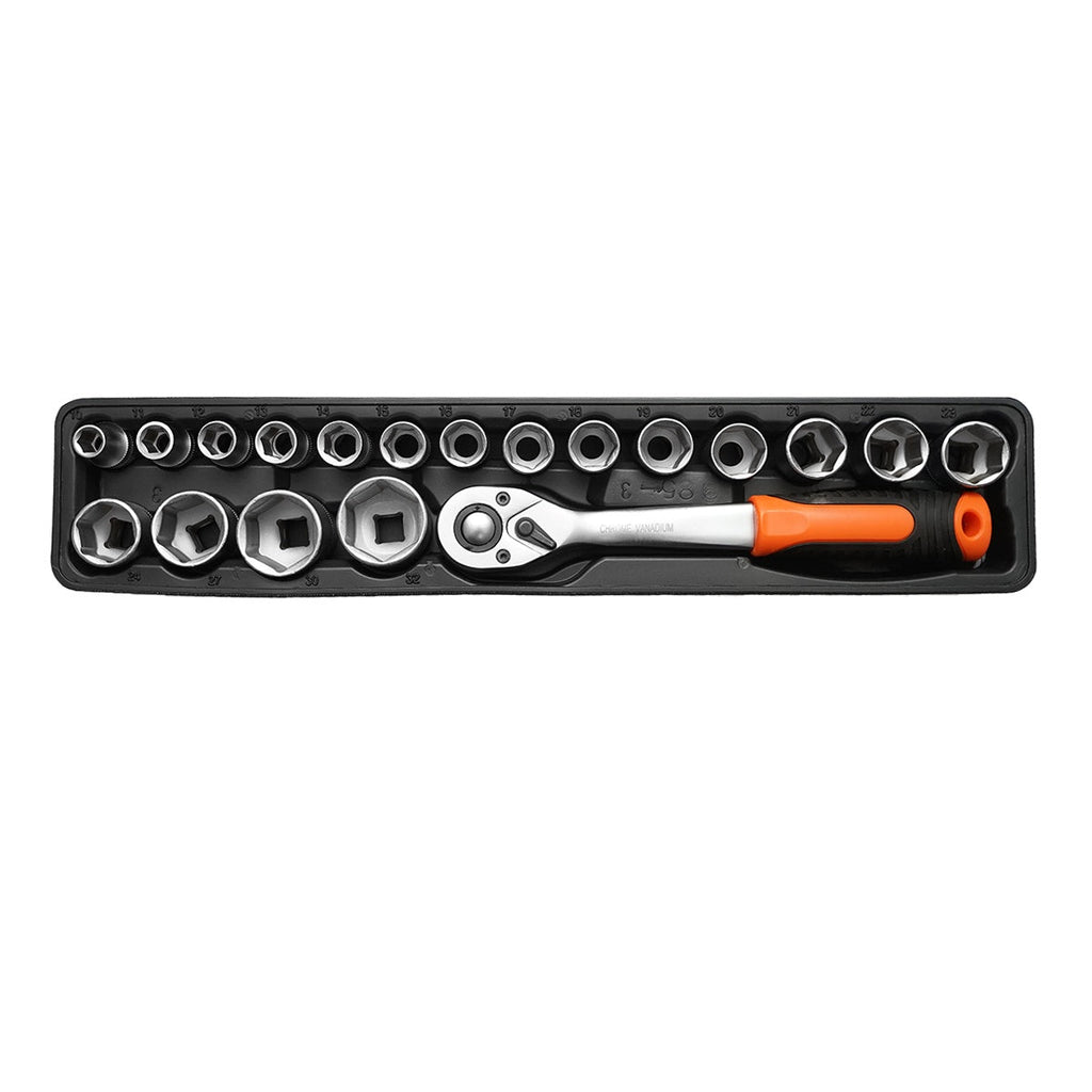- 18 ks x nástrčné hlavice 1/2: 10, 11, 12, 13, 14, 15, 16, 17, 19, 20, 21, 22, 23, 24, 25, 27, 30, 32 mm.