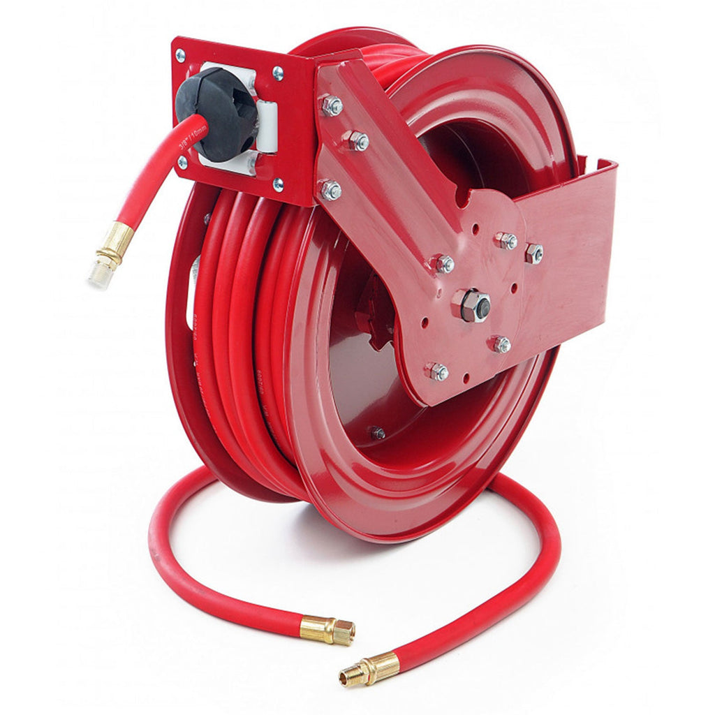 TOTO NAVIJAK NA VZDUCHOVÚ HADICU 20M S KOVOVÝM DRŽIAKOM má maximálny tlak 20 Bar a dĺžka navíjateľnej hadice je 20 metrov.