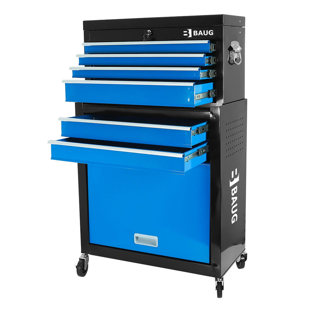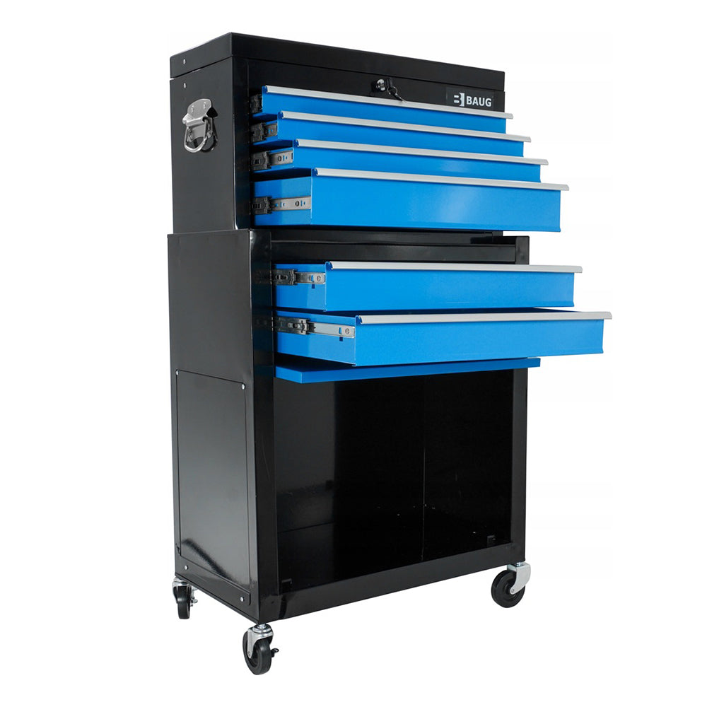 TÁTO KOVOVÁ SKRIŇA NA NÁRADIE 2 KUSY 6 ZÁSUVIEK BAUG je vynikajúcim riešením na skladovanie a organizáciu nástrojov a vybavenia v profesionálnom pracovnom prostredí, ako sú garáže, dielne, sklady a továrne.