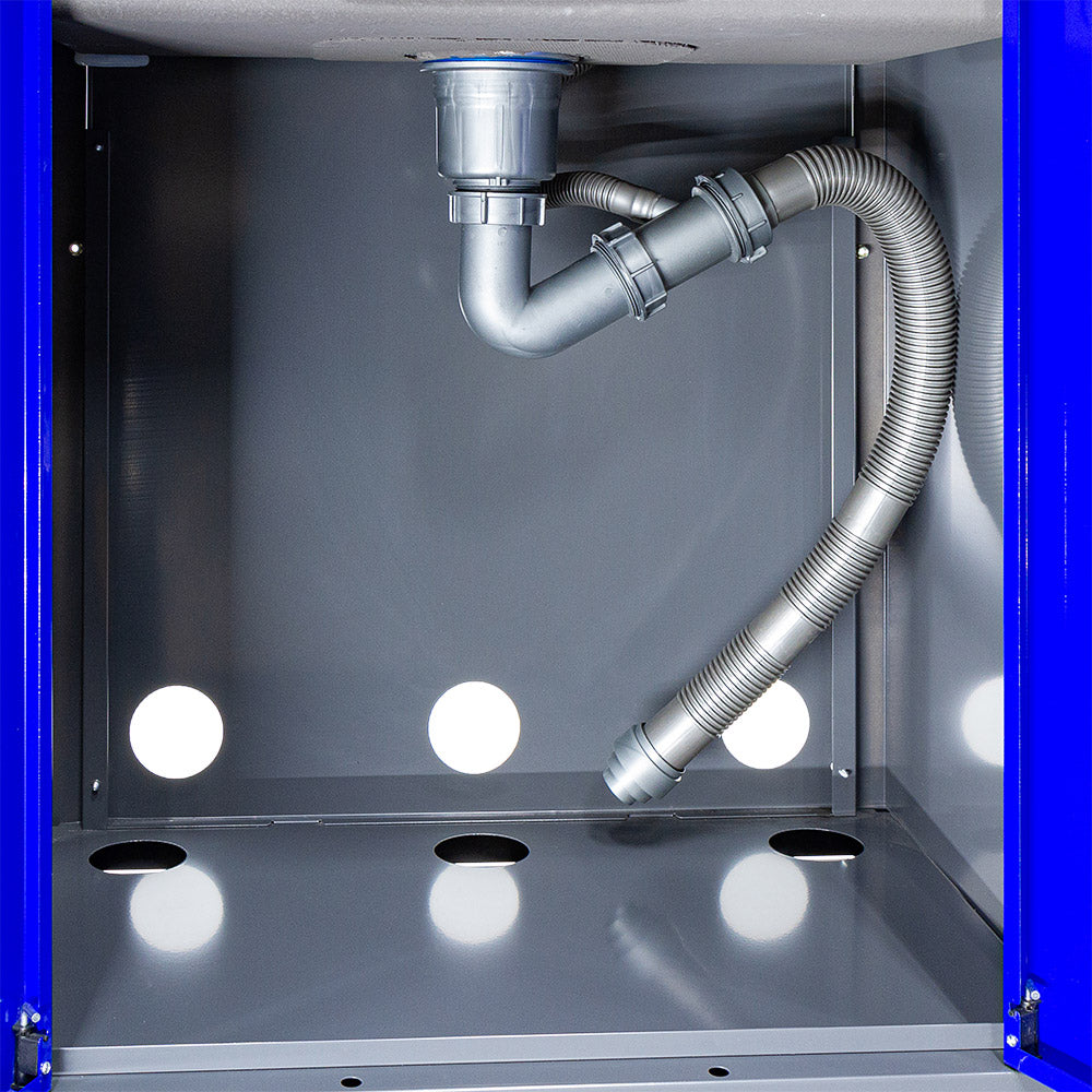 TÁTO DIELENSKÁ SKRINKA S DREZOM je spodná skrinka vybavená drezom a 2 dverami. Na dreze sa nachádza vodovodná batéria a dávkovač mydla. Za 2 dverami je úložný priestor. Celkové rozmery skrinky s drezom sú 460 x 680 x 935 mm a jej hmotnosť je 44 kg.
