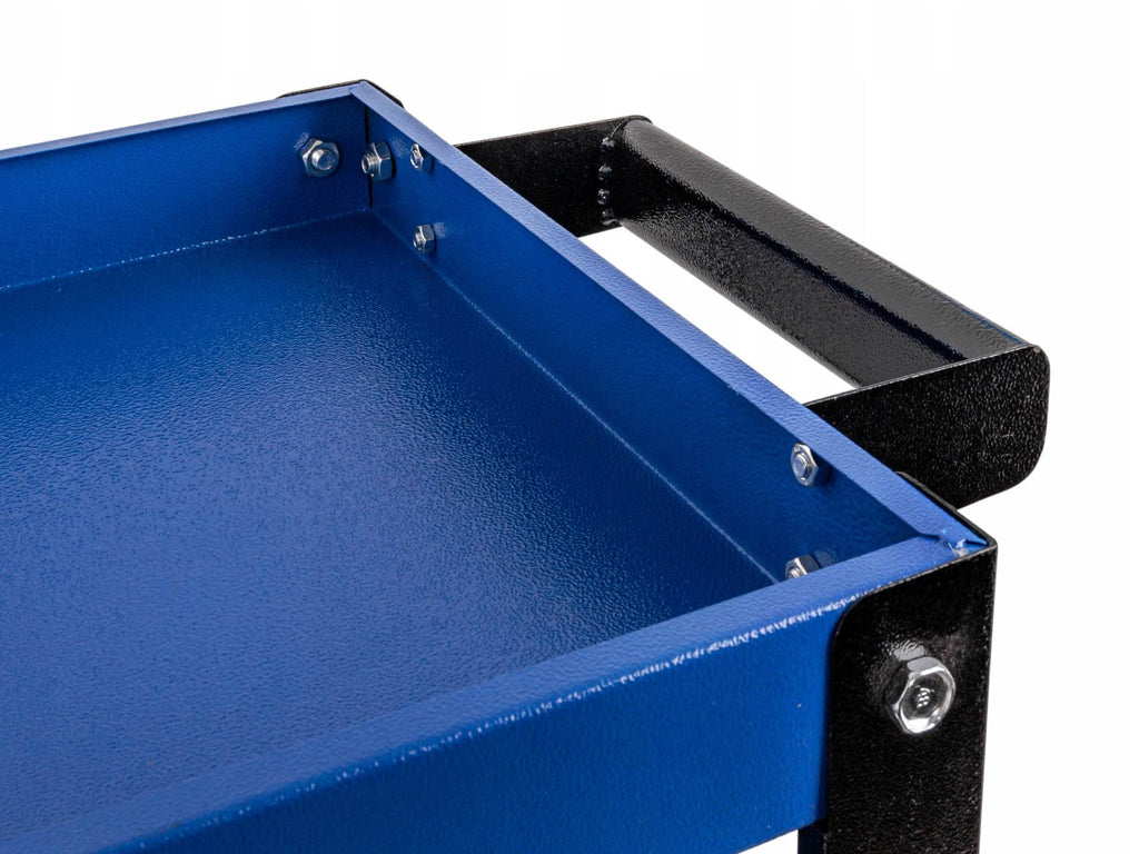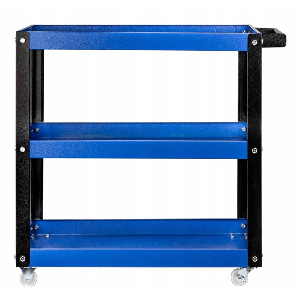 TENTO KOVOVÝ MOBILNÝ VOZÍK S 3 POLICAMI GEKO je praktickým a užitočným kusom nábytku do každej dielne. Vďaka 3 policám s hĺbkou 6 cm je možné uskladniť až 150 kg náradia, zariadení, škatúľ, materiálov alebo akéhokoľvek iného typu nákladu.
