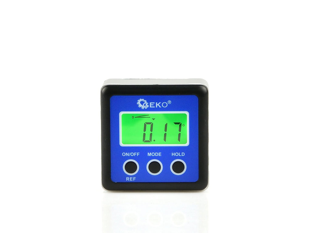DIGITÁLNA VODOVÁHA, INKLINOMETER GEKO je navrhnutá špeciálne na presné meranie uhla medzi dvoma rovinami. Zariadenie má veľký displej s podsvietením. Funkcia HOLD vám umožní ponechať aktuálne meranie na displeji. Funkcia REF umožňuje vynulovať uhlomer v akejkoľvek polohe a vykonať referenčné meranie. Vodováha je vybavená magnetom na základni.