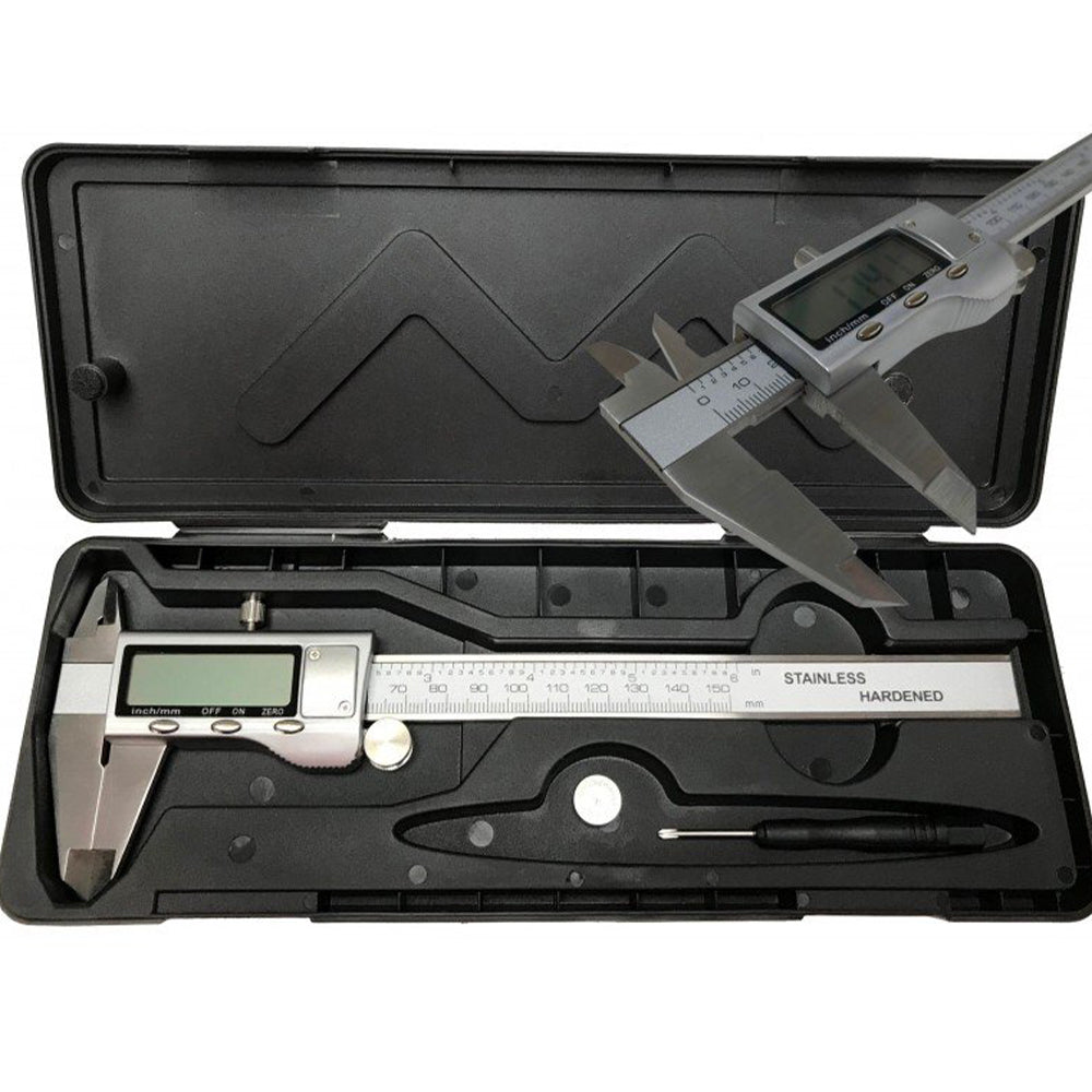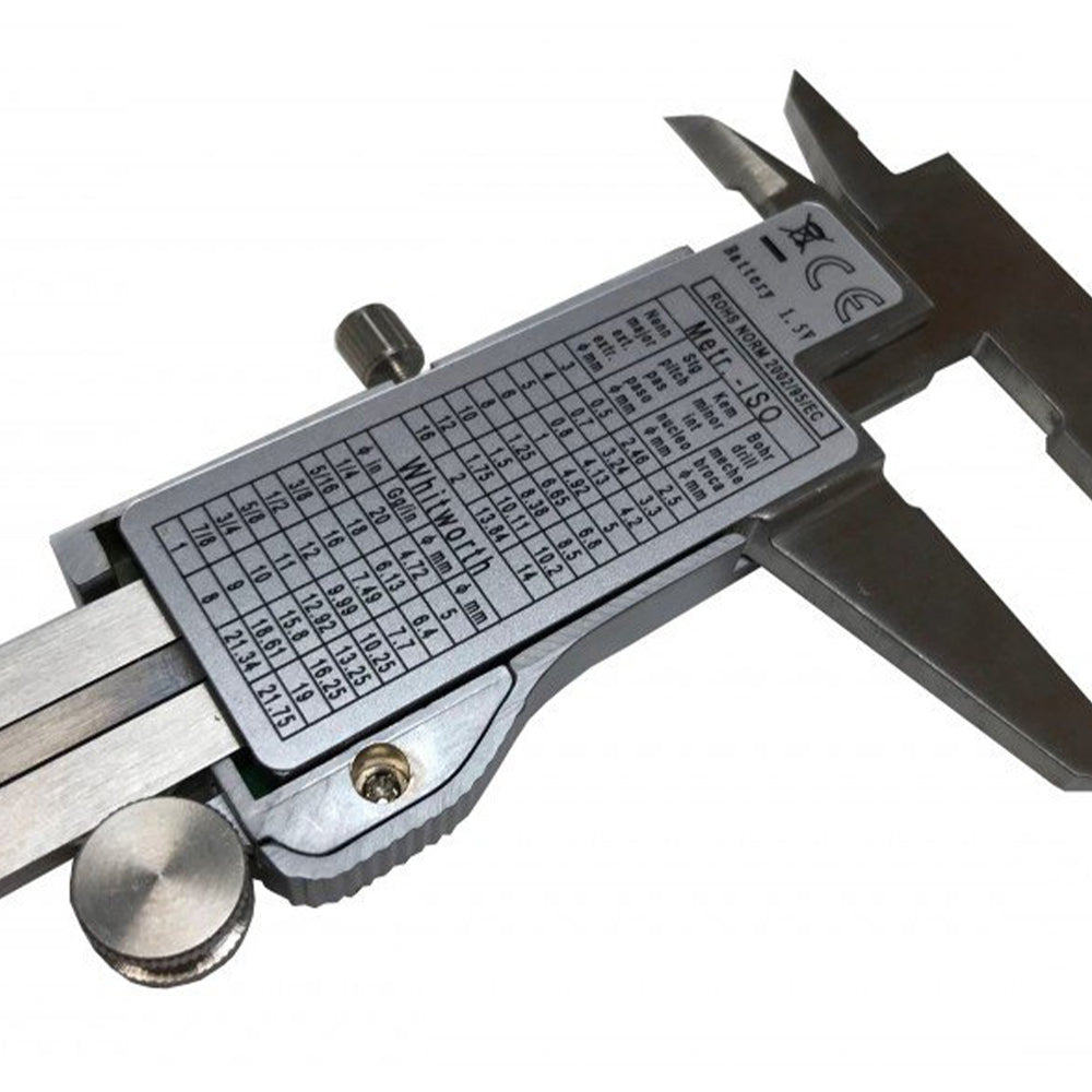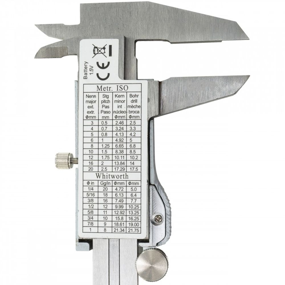TENTO DIGITÁLNY POSUVNÝ MERAČ 150MM 0.02MM má merací rozsah od 0 do 150 mm a presnosť (+/-) 0,02 mm / 0,001". Vyrobený z nehrdzavejúcej ocele a vybavený LCD displejom s rozlíšením 0,01 mm / 0,0005 inch. Prepínač na displeji umožňuje vykonávať merania v metrických jednotkách aj v palcoch. Toto zariadenie je určené na meranie vonkajších a vnútorných povrchov a hĺbky.