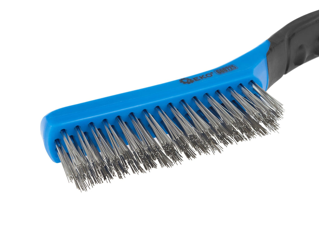 TÁTO DRÔTENÁ KEFA S RUKOVÄŤOU A 4 RADMI je nevyhnutný nástroj na čistenie hrdze, starej farby, vodného kameňa a ďalších nečistôt z kovových povrchov. Má 4 rady drôtu, čo zaisťuje vysoký výkon a dlhú životnosť. Ľahko sa používa a dokonale sa prispôsobí tvaru obrábaného prvku. Ergonomická rukoväť zabezpečuje pohodlný úchop a kontrolu pri práci.