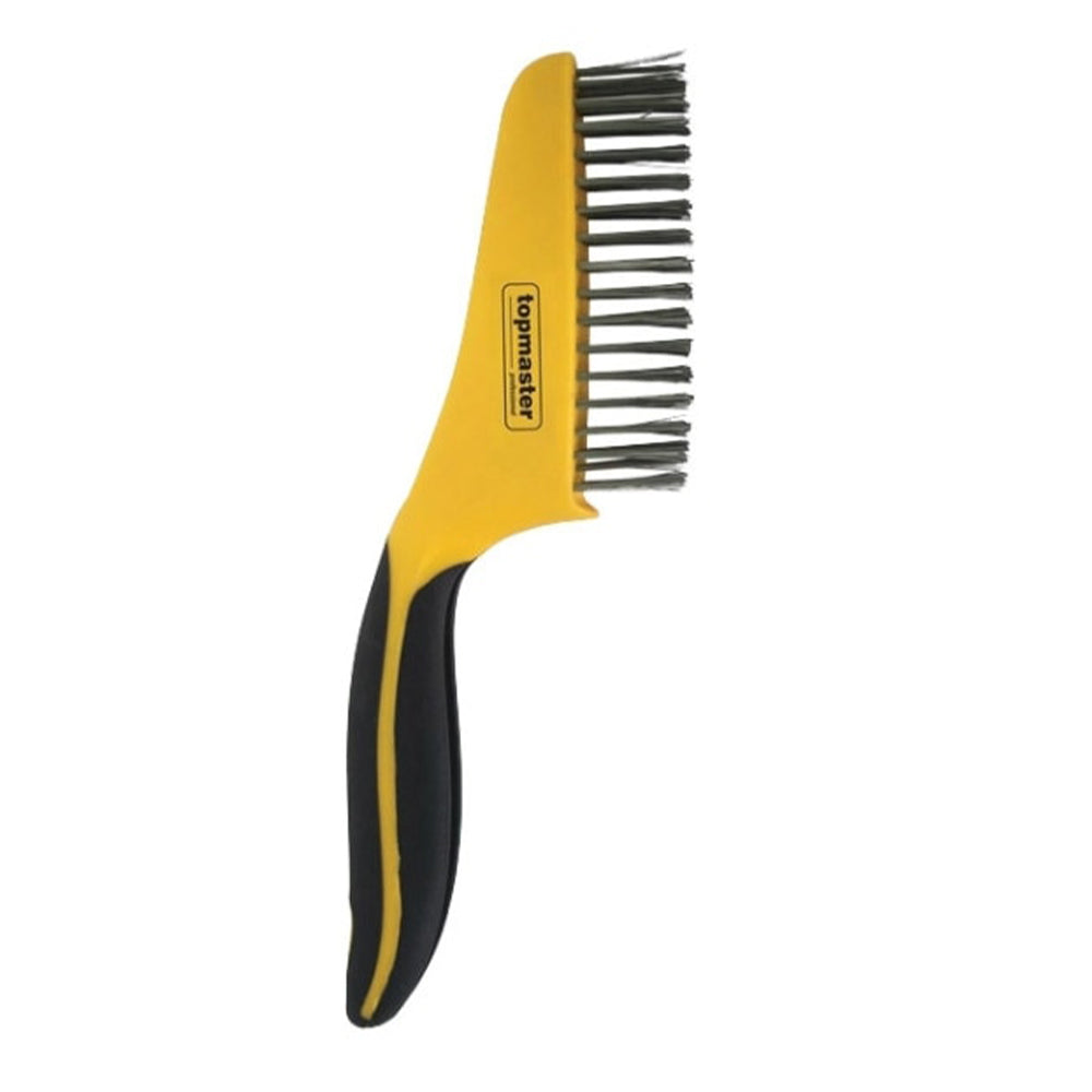 TÁTO DRÔTENÁ KEFA BI-MATERIÁL NEREZOVÁ OCEĽ S RUKOVÄŤOU 4X16 TOPMASTER je veľmi efektívna, pretože umožňuje ľahko a účinne pracovať aj v ťažšie prístupných oblastiach. Používanie kefy je pohodlné vďaka ergonomickej dvojvrstvovej rukoväti.