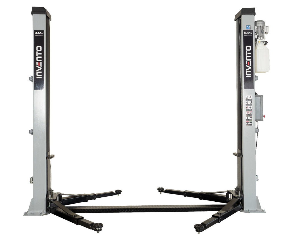 DVOJSTĹPOVÝ AUTOZDVIHÁK, 4T S ELEKTROHYDRAULICKÝM AUTOMATICKÝM ODBLOKOVANÍM 380V INVENTO má nosnosť 4000 kg a je určený na zdvíhanie osobných áut, SUV a ľahkých úžitkových vozidiel. Je vybavený systémom automatického odblokovania a pracuje pri 400V/50 Hz, s príkonom 2,2 kW.