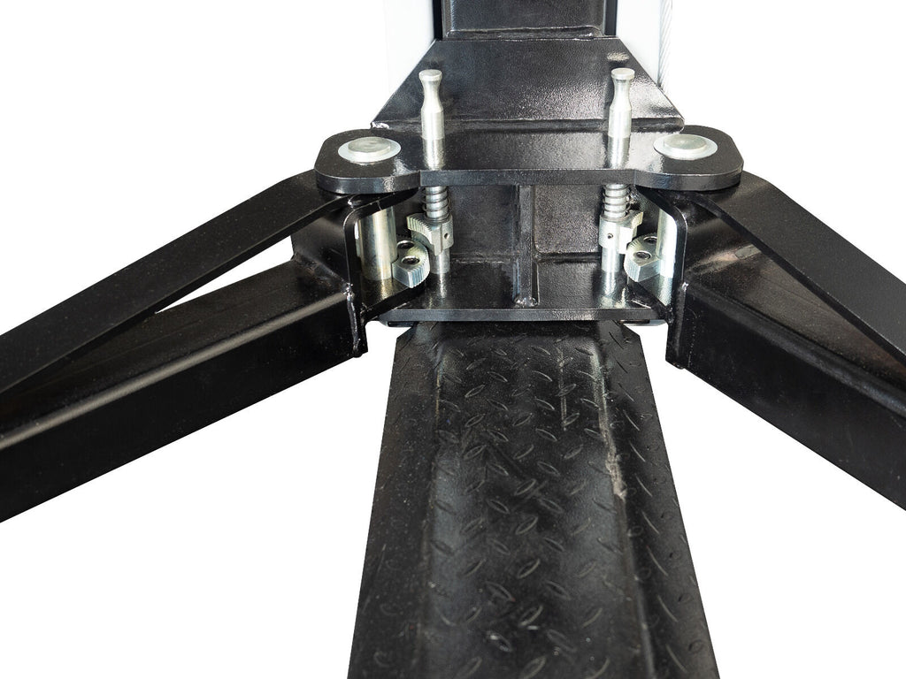 Čas zdvihu je 50 sekúnd. Konštrukcia zahŕňa automatický zámok ramien, ochranu dverí vozidla na stĺpoch, spodný prah na ochranu oceľového synchronizačného lana a nastaviteľné zdvihacie pätky.