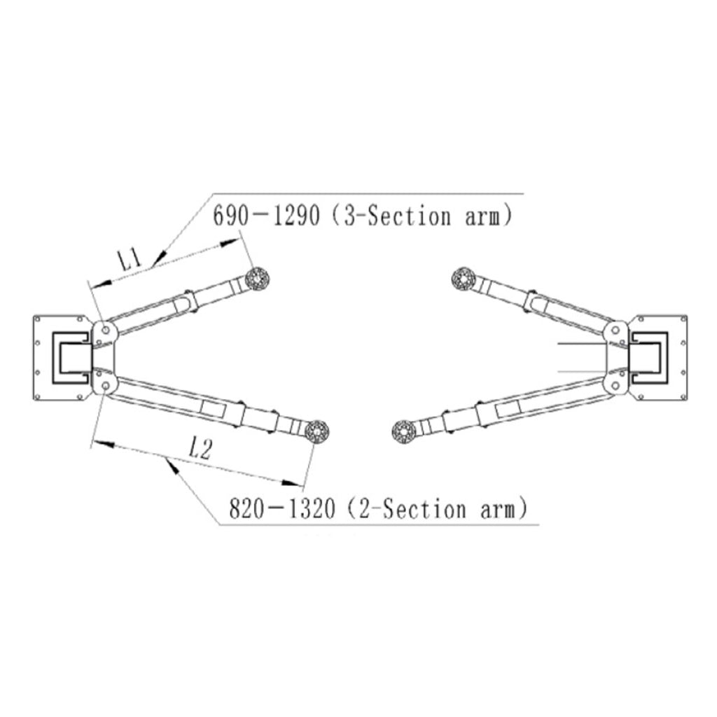 - Rozsah predného ramena: 690 - 1290 mm (3 stupne)