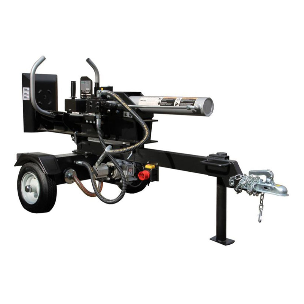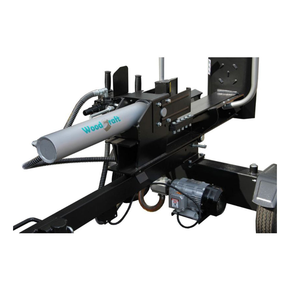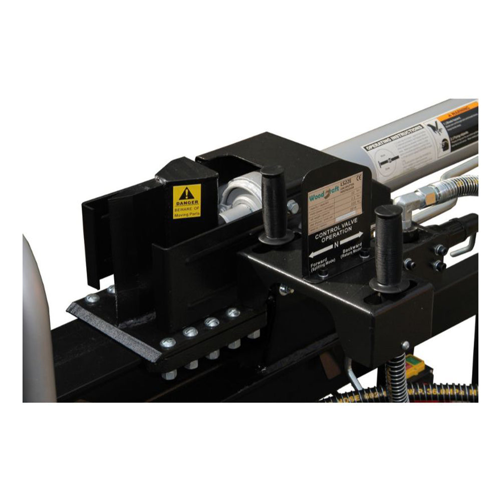 TOTO ELEKTRICKÉ ZARIADENIE NA ŠTIEPANIE/PRASKANIE/REZANIE DREVA 22 TON môže byť ovládané vodorovne aj zvisle. Dĺžka je nastaviteľná pre rôzne dĺžky dreva. Je vybavené spätným ventilom.