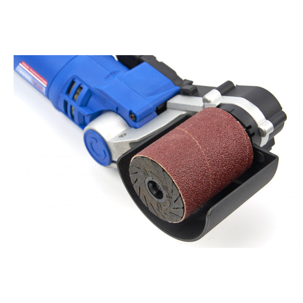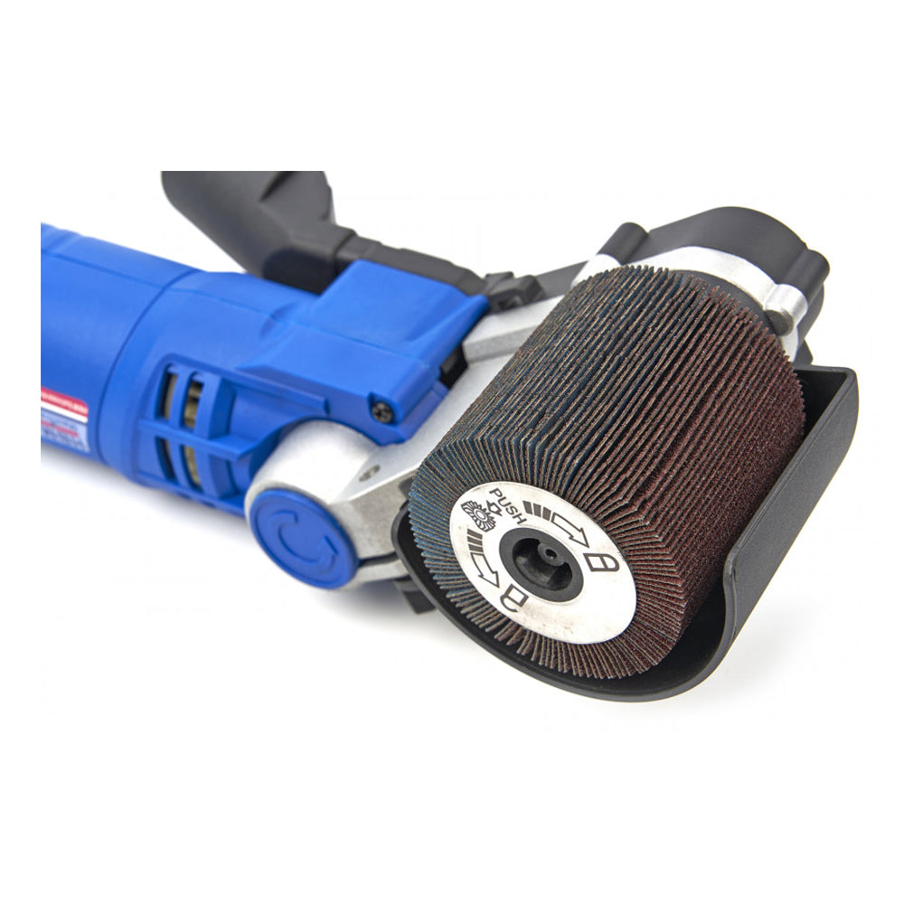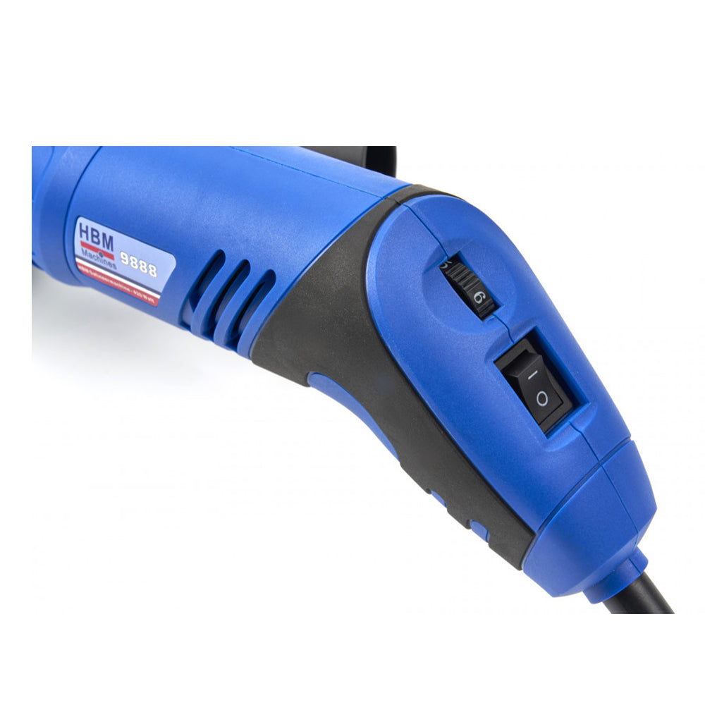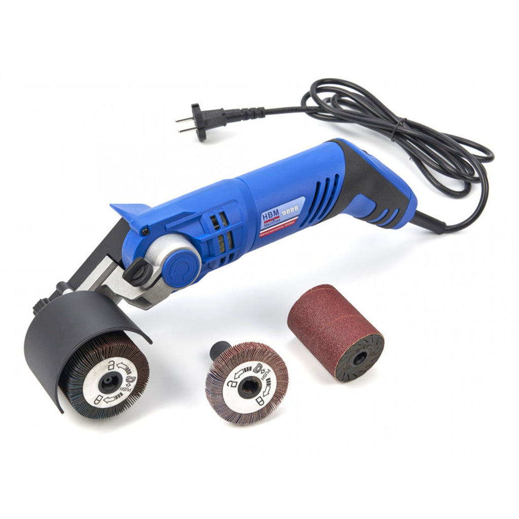 BRÚSKA A SATINOVACÍ STROJ NA KOV 420W HBM má nastaviteľnú rýchlosť v rozmedzí 400 až 1900 ot./min. Je vybavená pohyblivou hlavou, ktorá uľahčuje manipuláciu so strojom a brúsenie ťažko prístupných miest, pričom opracovanému kovu dodáva saténový vzhľad. Brúska je dodávaná s kefou so šírkou 10 mm a 60 mm, valcom s priemerom 60 mm a adaptérom 32 mm.