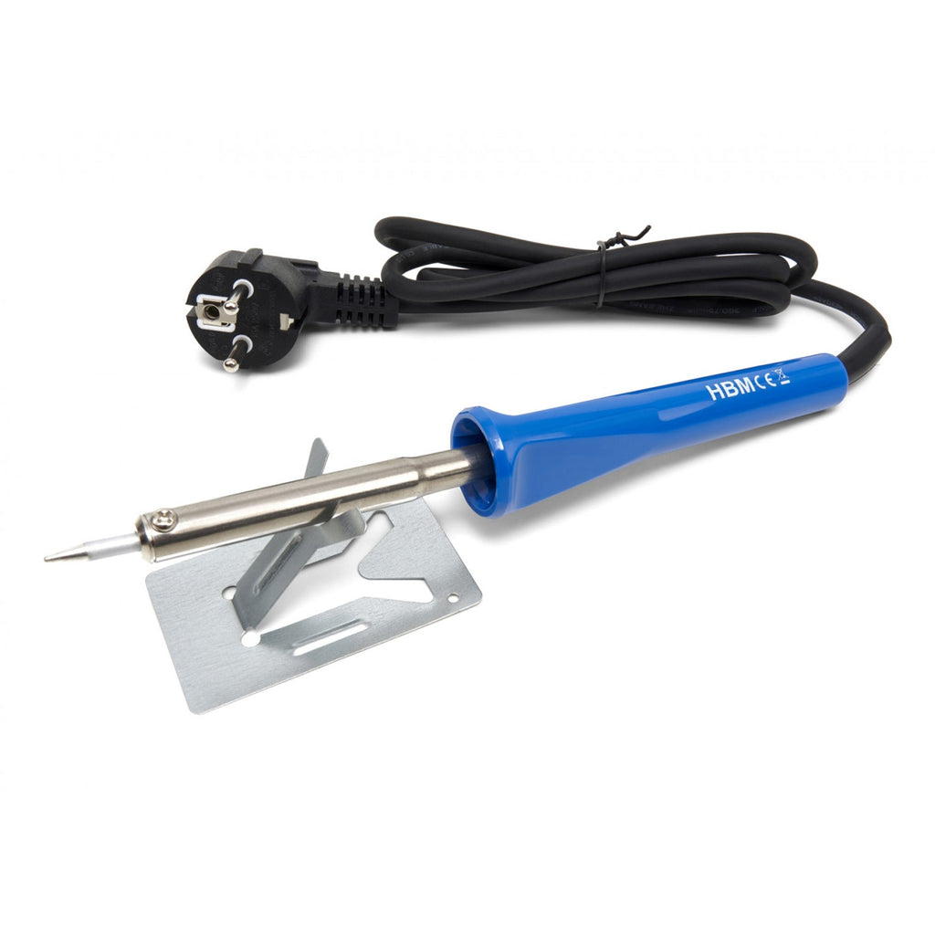 TENTO ELEKTRICKÝ SPÁJKOVACÍ KLADIVO 40W HBM je nástroj používaný na elektroinštalačné práce a spájkovanie. Pomocou tohto kladiva je možné spájkovať malé vodiče a káble alebo ho využiť aj pri dekoratívnych prácach. Rukoväť je z plastu, hrot výrobku je uhlový a kábel je z gumy.