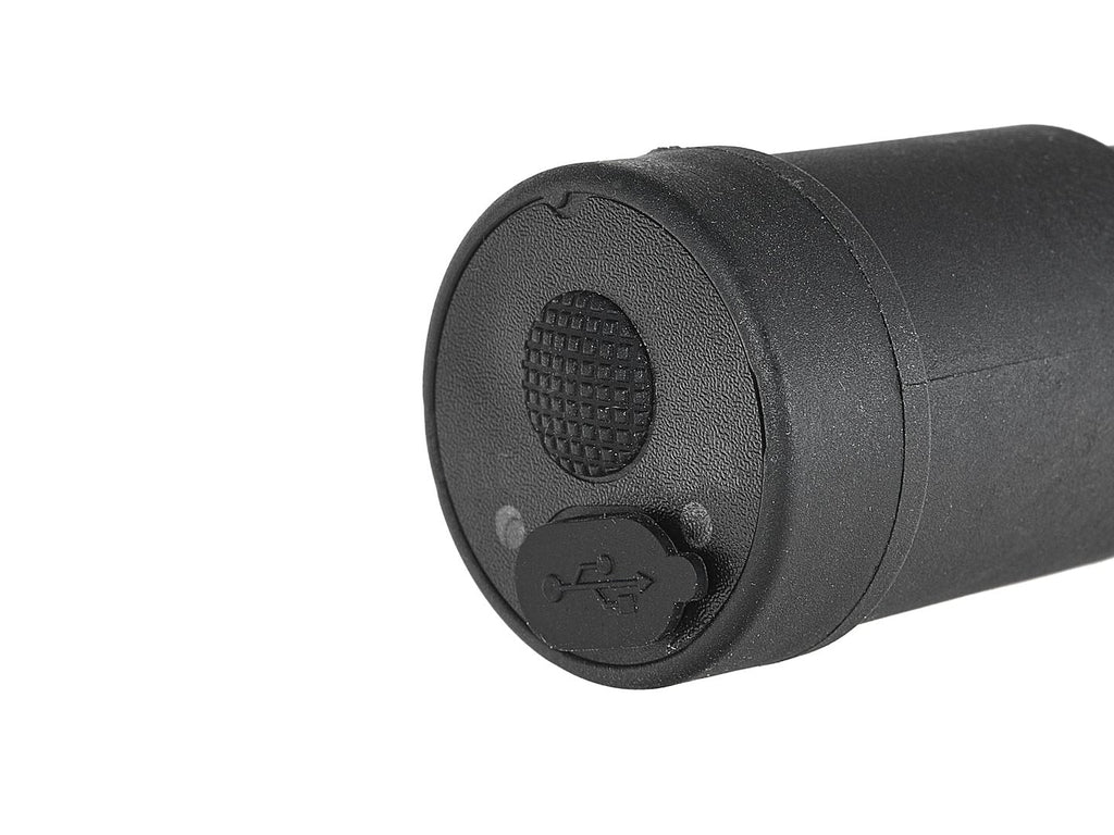 Napájanie je zabezpečené vstavanou nabíjateľnou batériou, ktorá sa nabíja pomocou konektora USB-C. Nabíjací kábel je súčasťou sady. Kryt je vyrobený z plastu ABS a PVC v kombinácii bielej a čiernej farby. Montážny priemer je 28 mm.