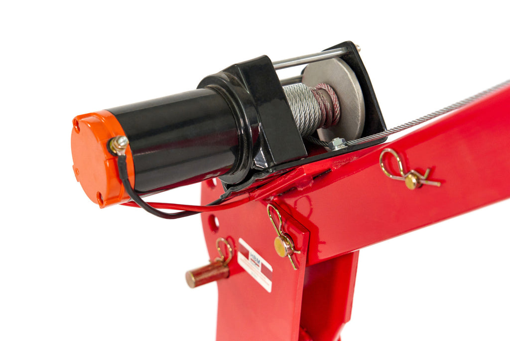 Zdvíhanie sa vykonáva pomocou výkonného 12V navijaka, ktorý dokáže zdvíhať bremená do 400 kg vďaka robustnej redukčnej prevodovke. Pomocou priloženej kladky sa zdvíhacia kapacita môže zdvojnásobiť až na 800 kg. Dlhé 8-metrové lano je dostatočne dlhé na udržanie dostatočnej výšky zdvihu pri použití kladky. Navijak sa ovláda ručným ovládačom s ergonomickým dizajnom a dvoma tlačidlami (hore a dole).