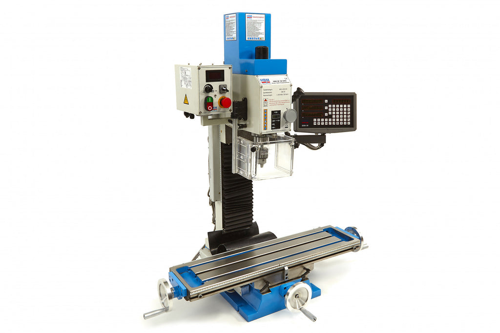 FRÉZOVAČKA A VŔTAČKA S VEĽKÝM STOLOM A DIGITÁLNYM DISPLEJOM BF 30 je multifunkčný nástroj používaný na obrábanie kovov a iných materiálov. Je vybavená veľkým stolom, ktorý umožňuje podoprenie a posúvanie väčších obrobkov, a digitálnym displejom, ktorý umožňuje používateľovi presne kontrolovať rýchlosť frézovania a vŕtania.