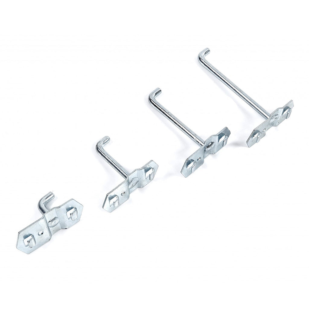 Sada 18 kovových háčikov na nástenný panel, organizér do dielne
