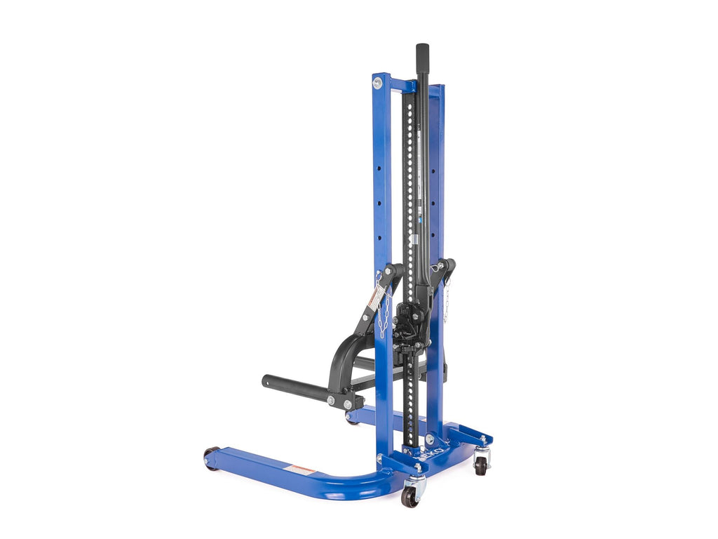 Zdvihák je vybavený štyrmi otočnými kolesami, ktoré poskytujú vysokú mobilitu. Rukoväť vidlice je užitočná pri zdvíhaní iba jedného kolesa vozidla. Je tiež vybavený posuvným pásom, ktorý umožňuje prepravu ťažkých nákladov. Tento posuvný pás môže slúžiť aj ako pracovný stôl pre rôzne opravy vybratých motorov alebo prevodoviek.
