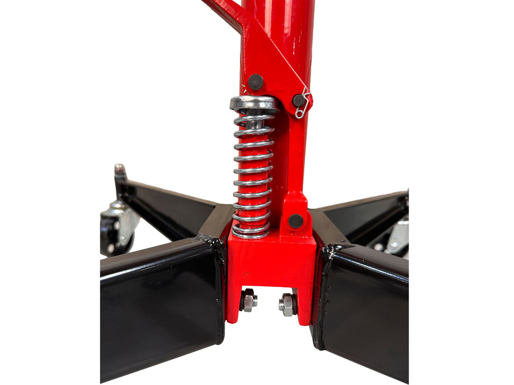 HYDRAULICKÝ ZDVIHÁK S PODPEROU NA ZDVIHANIE PREVODOVKY 500 KG 0.5T je určený na zdvíhanie prevodoviek, motorových komponentov alebo pohonných jednotiek s maximálnou kapacitou 500 kg. Pracovný rozsah zariadenia je medzi 1100 a 1995 mm, pričom poskytuje užitočnú zdvíhaciu výšku až 800 mm. Základňa zdviháka má rozmery 590 × 610 mm a je vybavená štyrmi kolieskami s priemerom 7 cm, namontovanými na otočnej platforme, čo uľahčuje presúvanie v dielni. Celková hmotnosť zariadenia je 24,5 kg.