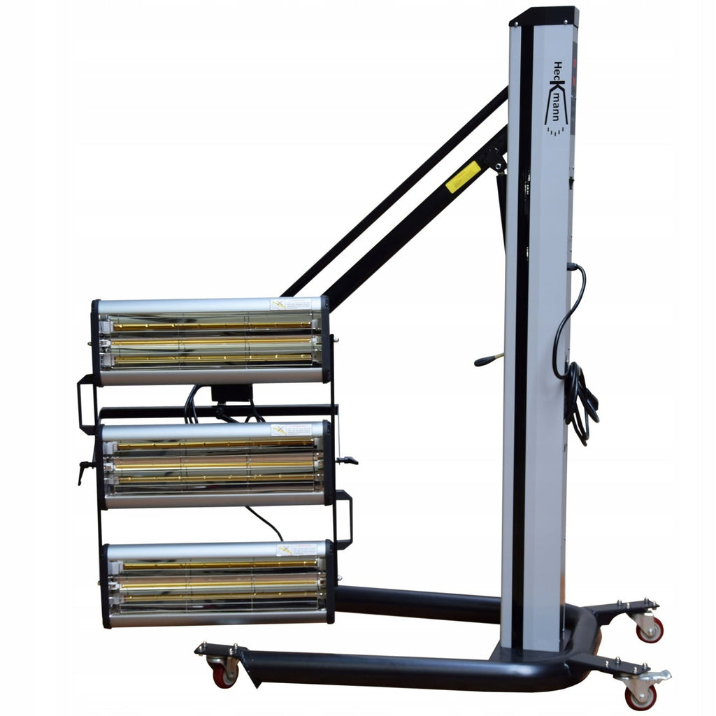 INFRAČERVENÁ SUŠIACA LAMPA NA FARBU MODEL 1 je špeciálne navrhnutá na sušenie všetkých typov lakovaných materiálov. Ohrievač má výkon 230V 1000W a generuje krátke tepelné vlny, ktoré zabezpečujú rýchle a rovnomerné sušenie. Lampa je vybavená vertikálnym stojanom a ovládacím tlačidlom, ktoré umožňuje nastavenie úrovne ohrevu.