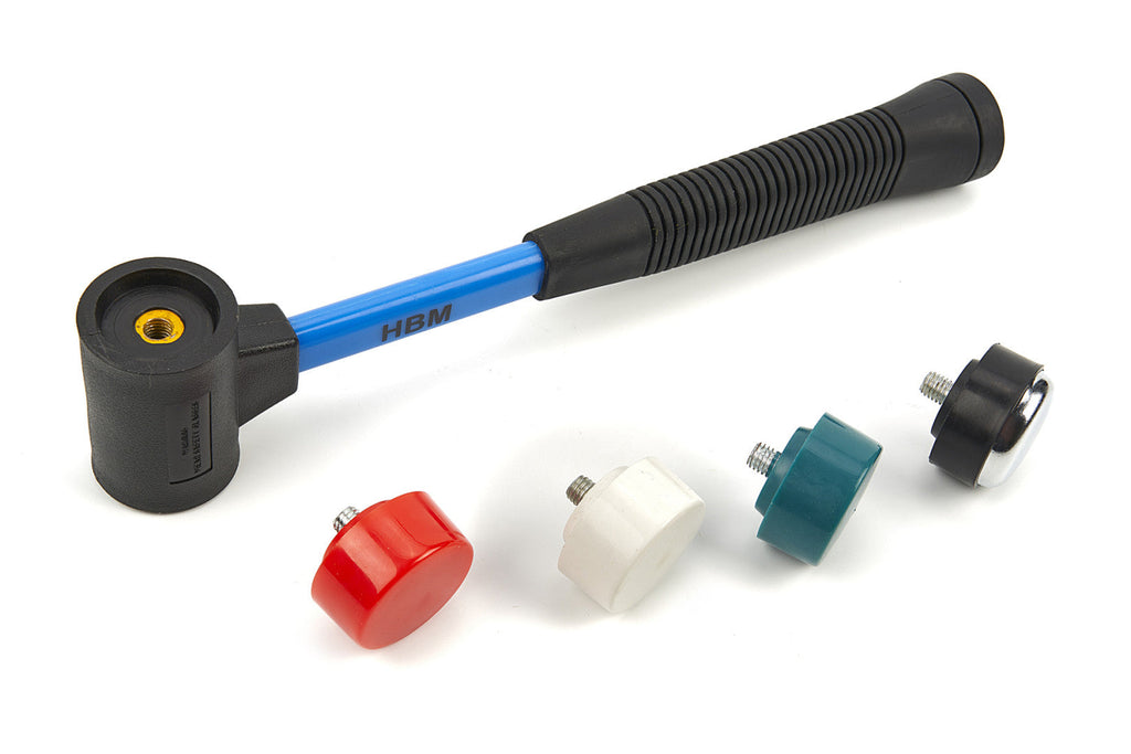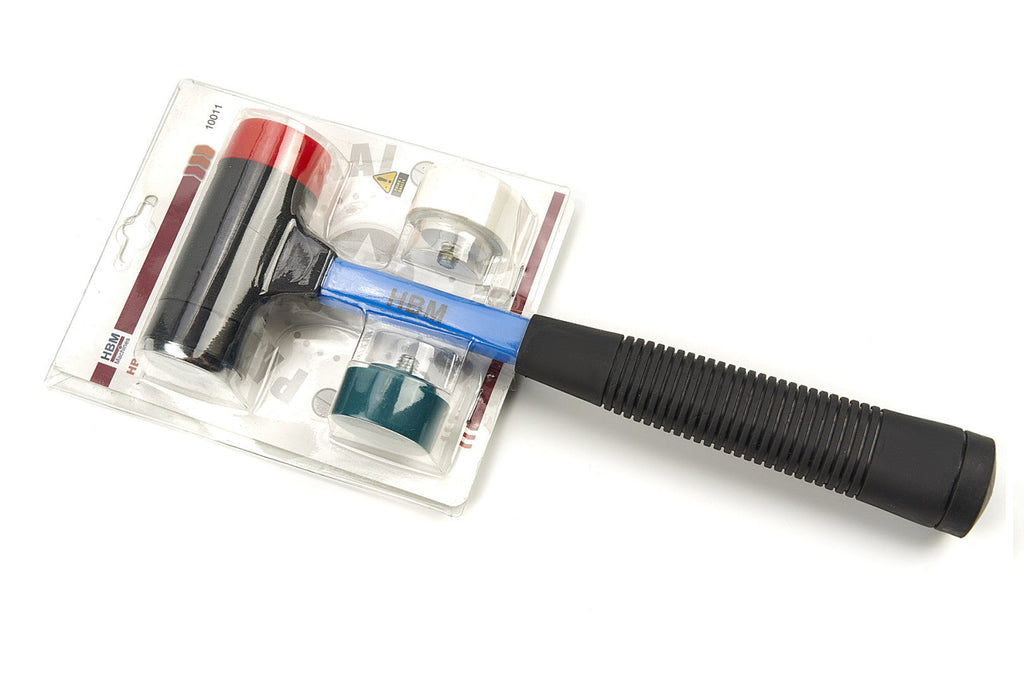 KLADIVO SO 4 VYMENITEĽNÝMI HLAVAMI 37MM HBM prichádza so štyrmi rôznymi hlavami na zaskrutkovanie, každá s inou tvrdosťou. Tvrdosť troch plastových hláv sa pohybuje od tvrdej po stredne tvrdú (POM-PP-PE). Štvrtá hlava je gumená hlava, ktorá má na vrchnej ploche zaoblenú oceľovú časť a je veľmi vhodná na údery do neželezných kovov.