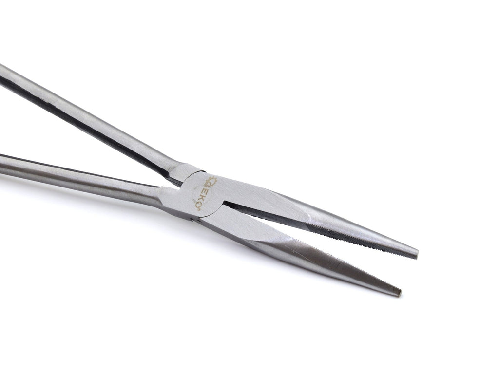 Tento KLIEŠŤ S DLHOU ROVNOU HLAVOU 400MM je vyrobený zo zliatiny chrómovej-vanádiovej ocele (CrV). Ergonomické protišmykové rukoväte zaisťujú pevné uchopenie a jednoduché používanie. Dĺžka klieští je 400 mm a hmotnosť približne 0,5 kg. Čeľuste sú poniklované a rukoväte potiahnuté pohodlným izolačným materiálom.
