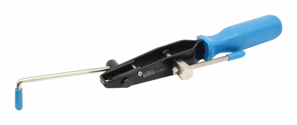 Kliešte na spony manžety poloosy SATRA sú vybavené napínacím mechanizmom a integrovanou čepeľou, ktorá umožňuje upevnenie manžety poloosy bez potreby ďalších nástrojov. Maximálna hrúbka spony je 1 mm a maximálna šírka 10 mm.