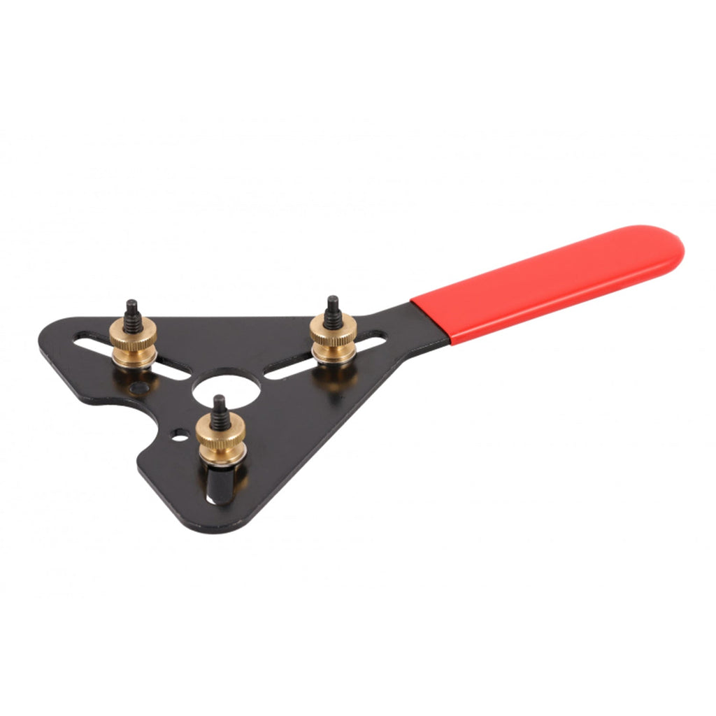 TENTO NASTAVITEĽNÝ KĽÚČ NA MONTÁŽ/DEMONTÁŽ SPOJKY KOMPRESORA KLIMATIZÁCIE drží spojku kompresora klimatizácie v polohe pri odstraňovaní upevňovacieho skrutky tým, že sa nastaviteľné kolíky prispôsobia otvorom v spojke. Je vyrobený z ocele a jeho rozmery sú 250 x 150 x 50 mm.
