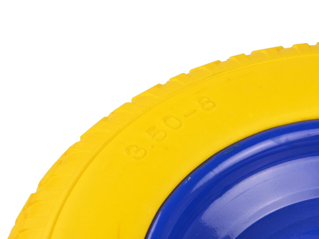 KOLESO PRE FÚRIK 3.50-8 GEKO je vyrobené z polyuretánu a ráfik je z ocele potiahnutej práškovou farbou. Maximálne zaťaženie je 90 kg. Vonkajší priemer pneumatiky je 370 mm a vnútorný priemer je 220 mm. Priemer osi je 12 mm a šírka náboja je 97 mm. Ložiská sú vybavené dvojitými guľôčkami.
