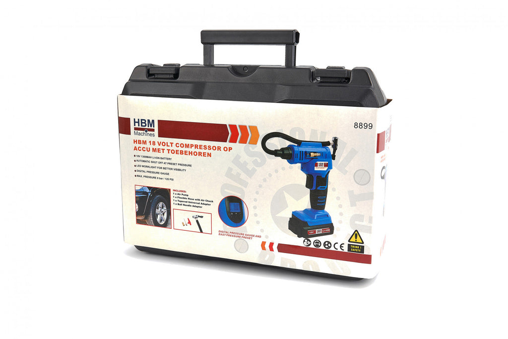 Tento KOMPRESOR 12V NA HUSTENIE PNEUMATÍK S LED OSVETLENÍM A AKUMULÁTOROM je užitočný v situáciách, keď je tlak v pneumatikách príliš nízky. Možno ho použiť aj na bicykle, nafukovacie matrace a podobné predmety. Najväčšou výhodou tohto zariadenia je jeho jednoduchá prenosnosť. Nie sú potrebné žiadne batérie, pretože využíva dobíjateľnú lítium-iónovú batériu. Zariadenie sa veľmi ľahko ovláda – stačí pripojiť hadicu k predmetu, stlačiť tlačidlo a aktuálny tlak sa zobrazí na displeji. Pre lepšiu viditeľnosť je kompresor vybavený LED svetlom a automaticky sa vypne po dosiahnutí nastavenej hodnoty tlaku. Dodáva sa v odolnom púzdre.