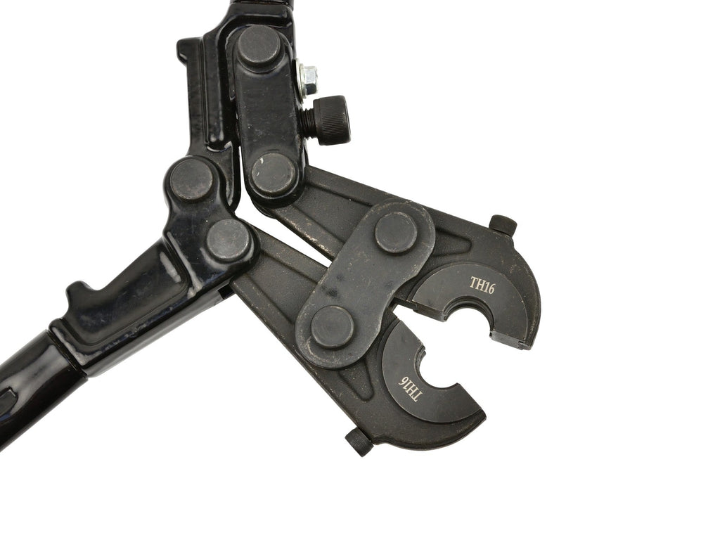 Sila lisovania je nastaviteľná pomocou bočnej skrutky M10. Zariadenie je kompatibilné aj s čeľusťami typu U (nie sú súčasťou balenia). Nepotrebuje elektrické napájanie, preto je ideálne pre práce vo výškach alebo v oblastiach bez prístupu k elektrine.