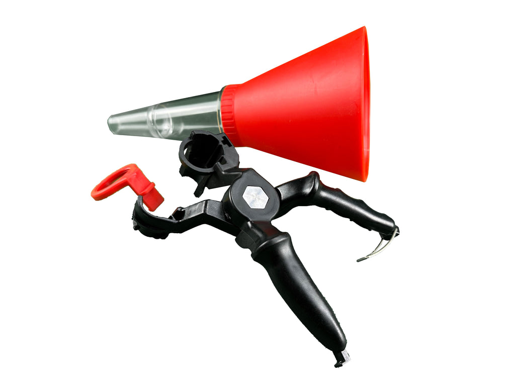LIEVIK NA OLEJ 28-75MM GEBO TOOLS je vyrobený z odolného plastu a je vybavený svorkou, ktorá upevňuje lievik tak, aby nedošlo k únikom alebo iným nehodám. Spodná časť lievika je priehľadná na kontrolu prietoku oleja.