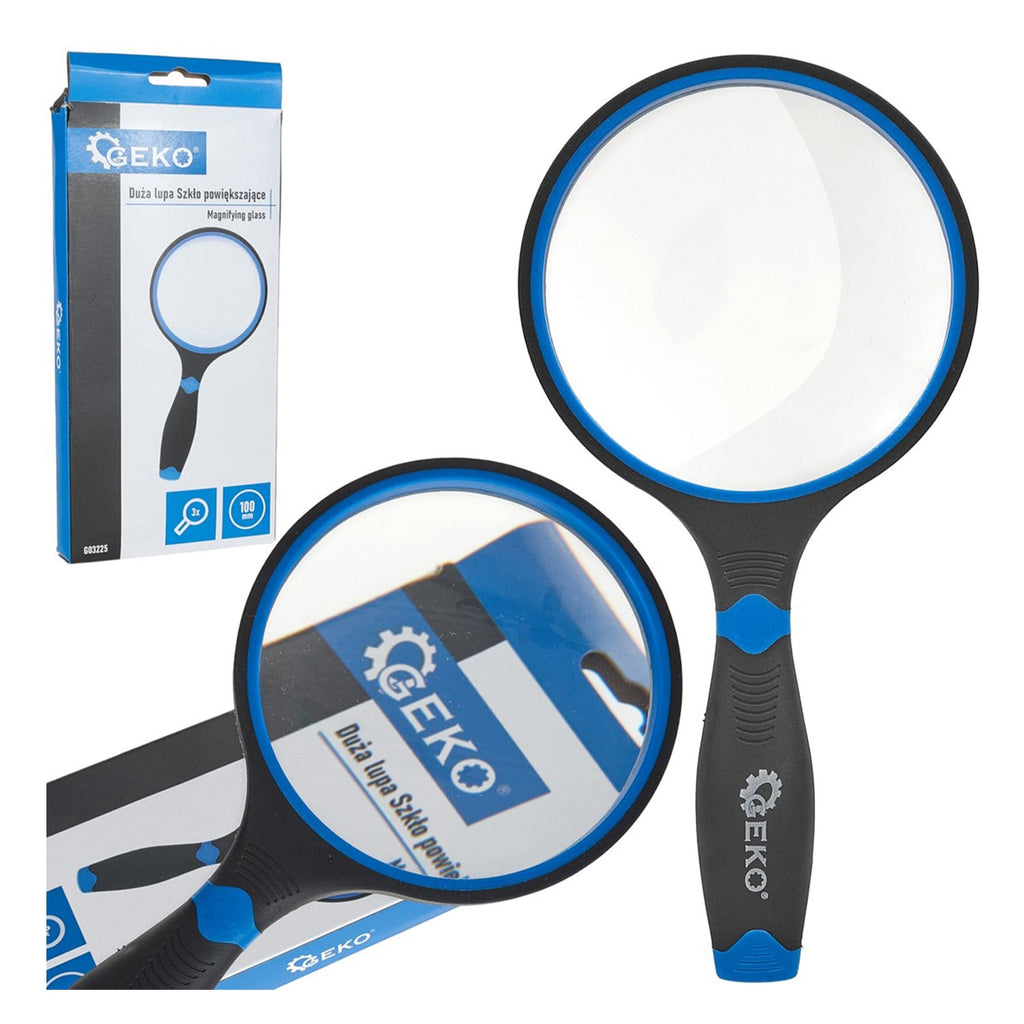 LUPOU S GUMENOU RUKOVÄŤOU 3X 100MM GEKO je ideálna na úlohy, ktoré vyžadujú presnosť. Priemer šošovky je 100 mm. Táto lupa dokáže zväčšiť 3-krát. Ergonomická rukoväť vyrobená z gumy je špeciálne navrhnutá tak, aby poskytovala pohodlné a bezpečné uchopenie.