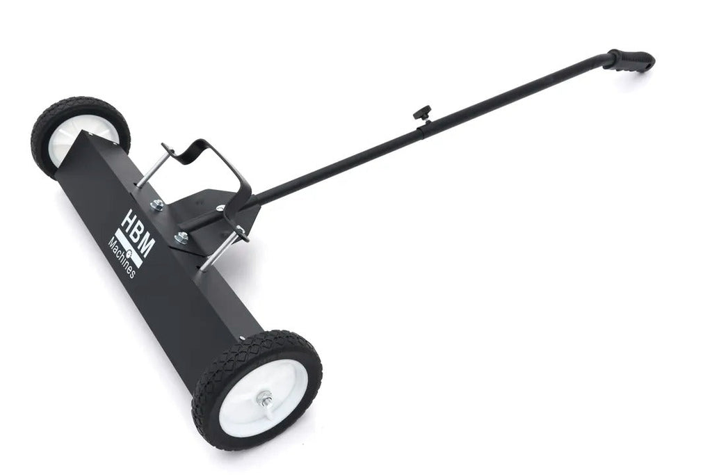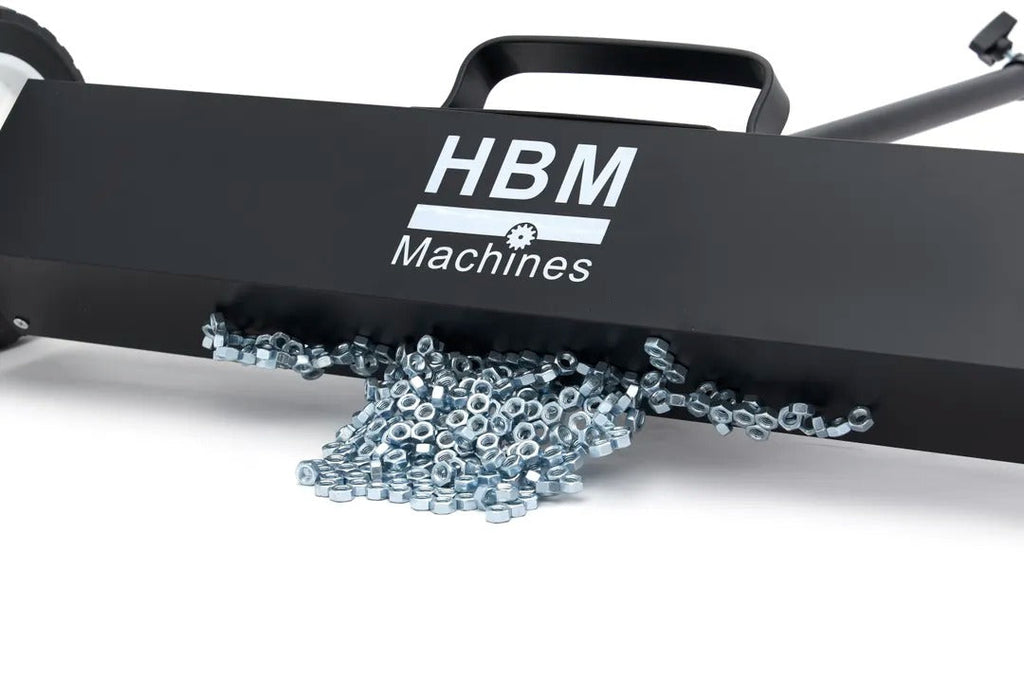 MAGNETICKÁ METLA S KOLESAMI NA RÝCHLE ČISTENIE KOVOVÝCH ČASTÍC NA AKOMKOĽVEK POVRCHU HBM má dĺžku 61 cm a maximálnu magnetickú silu 22 kg, čo umožňuje efektívne pokrytie a silný zber kovov. Sedempalcové kolesá zabezpečujú jednoduchú manipuláciu aj na nerovných povrchoch, ako je tráva alebo koberce. Extra široká pracovná hlava prispieva k efektivite čistiaceho procesu.