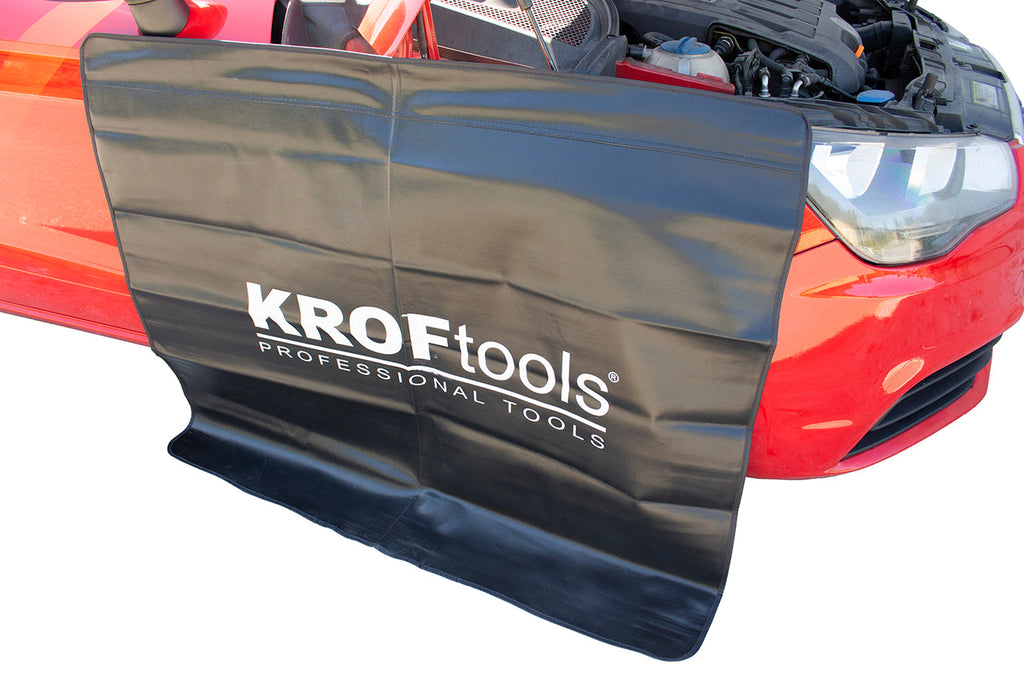 TENTO MAGNETICKÝ OCHRANNÝ POŤAH NA BLATNÍK 120X100CM KROFTOOLS je ideálny nástroj na zabránenie poškriabaniu auta počas práce. Okraj poťahu má magnetickú pásku umiestnenú medzi dvoma vrstvami textilného materiálu.