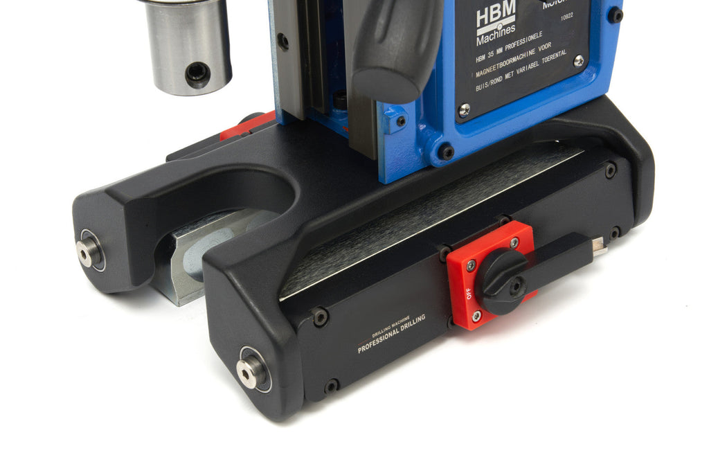 TÁTO MAGNETICKÁ VŔTAČKA S PODSTAVCOM 1600W 230V 35MM HBM je špeciálne navrhnutá na upevnenie na okrúhle predmety, ako sú oceľové rúry a oceľové objekty, ale aj na ploché dosky. Magnetická základňa je tvorená z dvoch sklopných častí, každá s vlastným magnetom. Nastaviteľná rýchlosť umožňuje použiť nástroj na rôzne materiály.