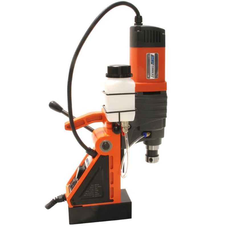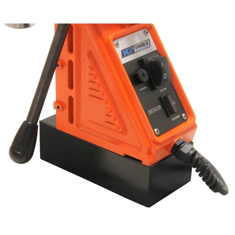 MAGNETICKÁ VŔTAČKA 50MM je špeciálne zariadenie navrhnuté na presné vŕtanie do kovových materiálov pomocou magnetickej sily na upevnenie stroja na pracovnú plochu. Tento stroj sa používa najmä na vŕtacie operácie na ťažko prístupných miestach alebo pri práci na vertikálnych či horizontálnych plochách.