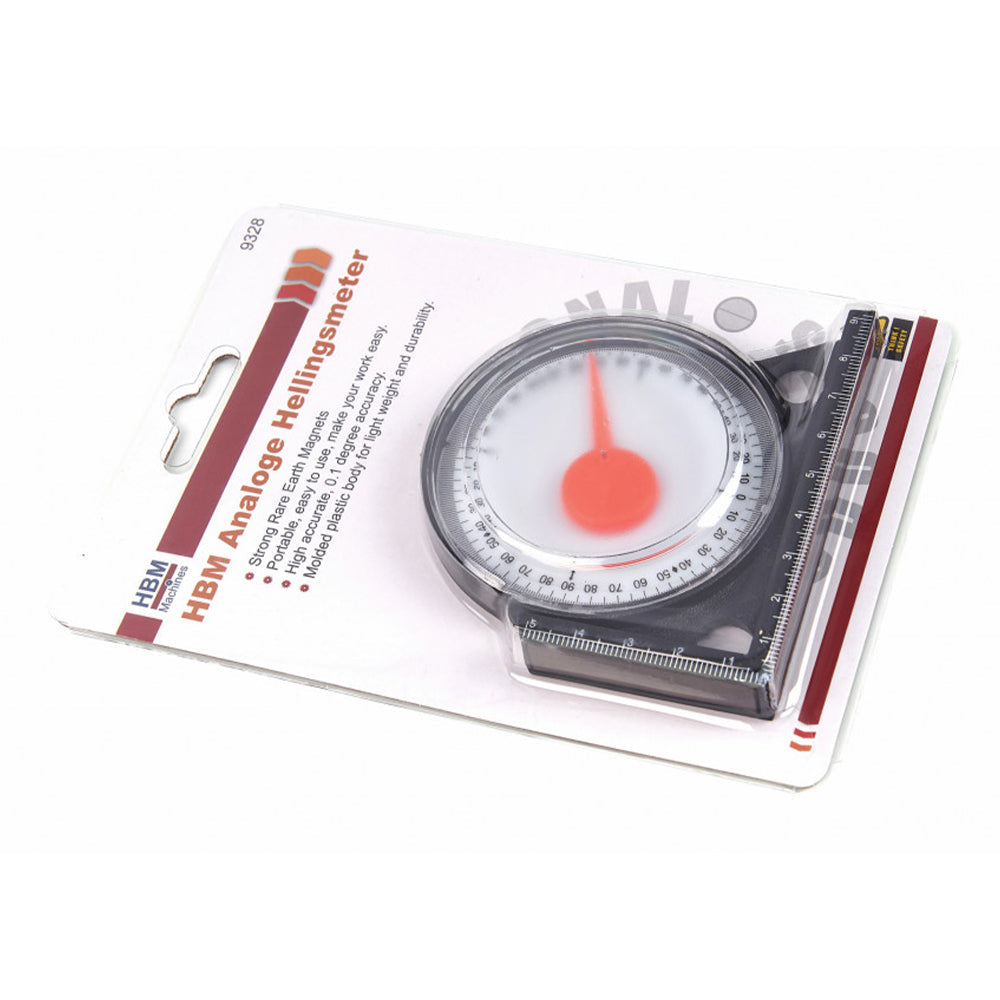 ANALÓGOVÝ MAGNETICKÝ INKLINOMETER HBM má základňu 50 mm a 90 mm a je možné ho odčítať po štvrtinách 90°. Je to analógový typ a merania je možné odčítať v milimetroch. Zariadenie je vyrobené z odolného plastu, aby bolo chránené proti korózii.