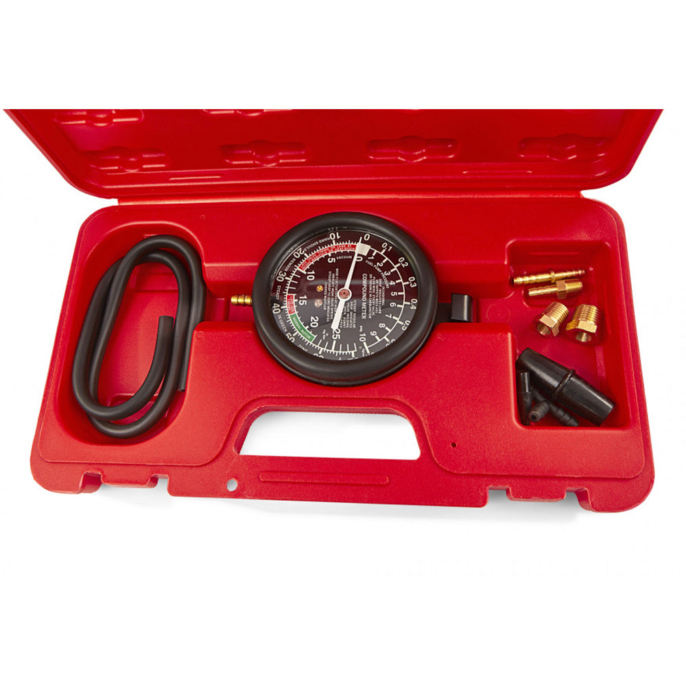 MANOMETER TLAKU A VÁKUOVÝ HBM dokáže odhaliť aj nízku kompresiu motora, nesprávne zapaľovanie, stav palivovej zmesi a zistiť netesnosti paliva. Správne hodnoty sú uvedené na ciferníku manometra.