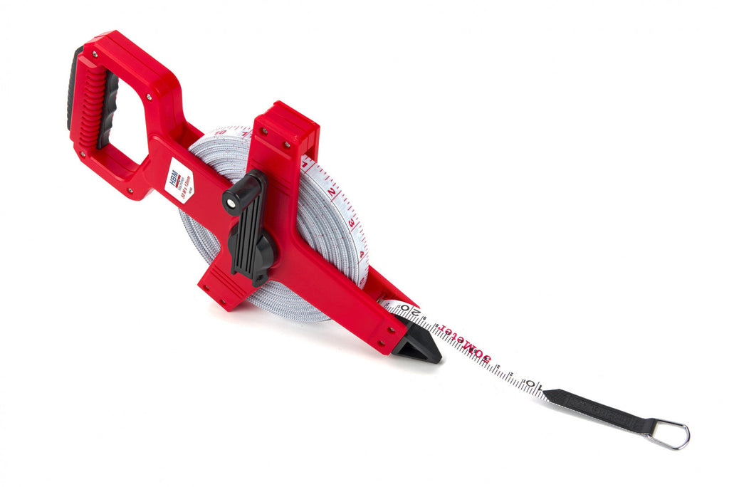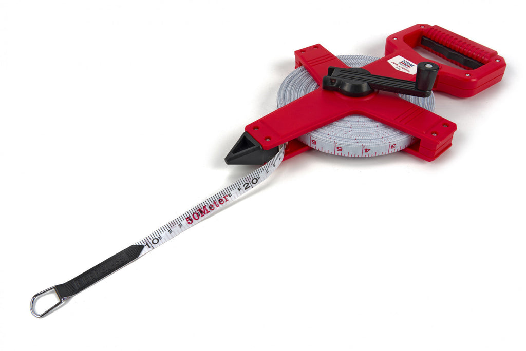 GEODETICKÝ MERACÍ PÁS SO SKLENENÝMI VLÁKNAMI PRE TOPOGRAFICKÉ MERANIA S RUKOVÄŤOU 50 M X 13 MM HBM je vybavený robustným puzdrom z plastu ABS na ochranu pred poškodením. Merací háčik so sklopným pásom pre bezpečné ukotvenie. Mäkká rukoväť pre pohodlné prenášanie, sklopná kľuka pre rýchle navinutie a bezpečné skladovanie. Pás vystužený sklenými vláknami – pevný a odolný voči naťahovaniu. Oboustranná stupnica MM a INCH.