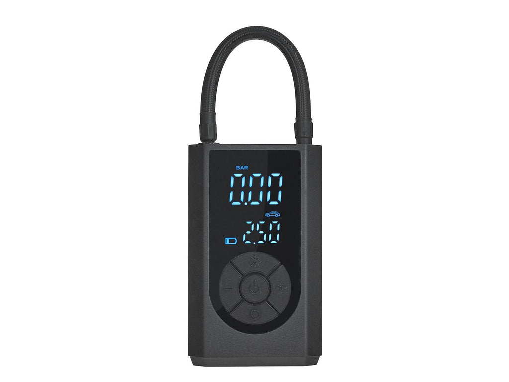 Vstavaný LED displej umožňuje sledovanie tlaku v štyroch jednotkách: PSI, BAR, KPA a KG/CM². Funkcia automatického vypnutia zastaví kompresor po dosiahnutí nastavenej hodnoty tlaku. Prúd vzduchu dosahuje 25 l/min a dĺžka vzduchovej hadice je 170 mm.