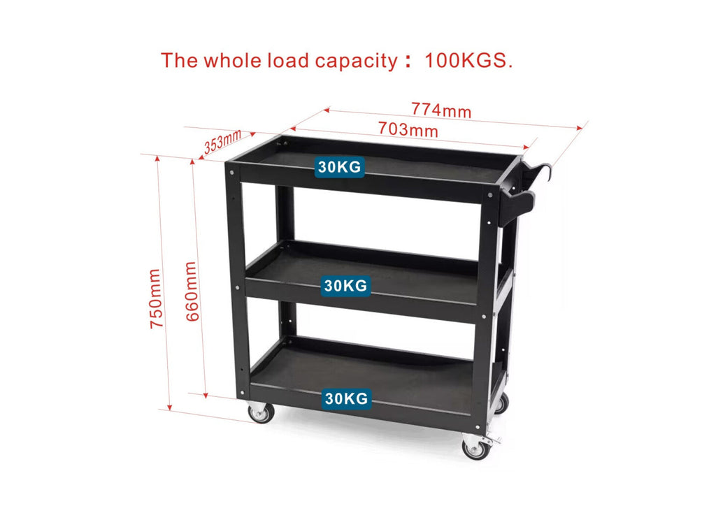 TENTO MOBILNÝ VOZÍK S 3 POLICAMI, DRŽIAKOM NA SKRUTKOVAČE A SPREJE je ideálny produkt pre dielne a garáže na skladovanie a prepravu náradia. Vozík má 2 otočné kolesá s brzdami a 2 bez bŕzd, čo uľahčuje presun z jedného miesta na druhé. Zásuvky sú vybavené guľôčkovými ložiskami a protišmykovou vrstvou. Vozík je potiahnutý práškovou farbou, ktorá ho chráni pred poškriabaním a nárazmi.