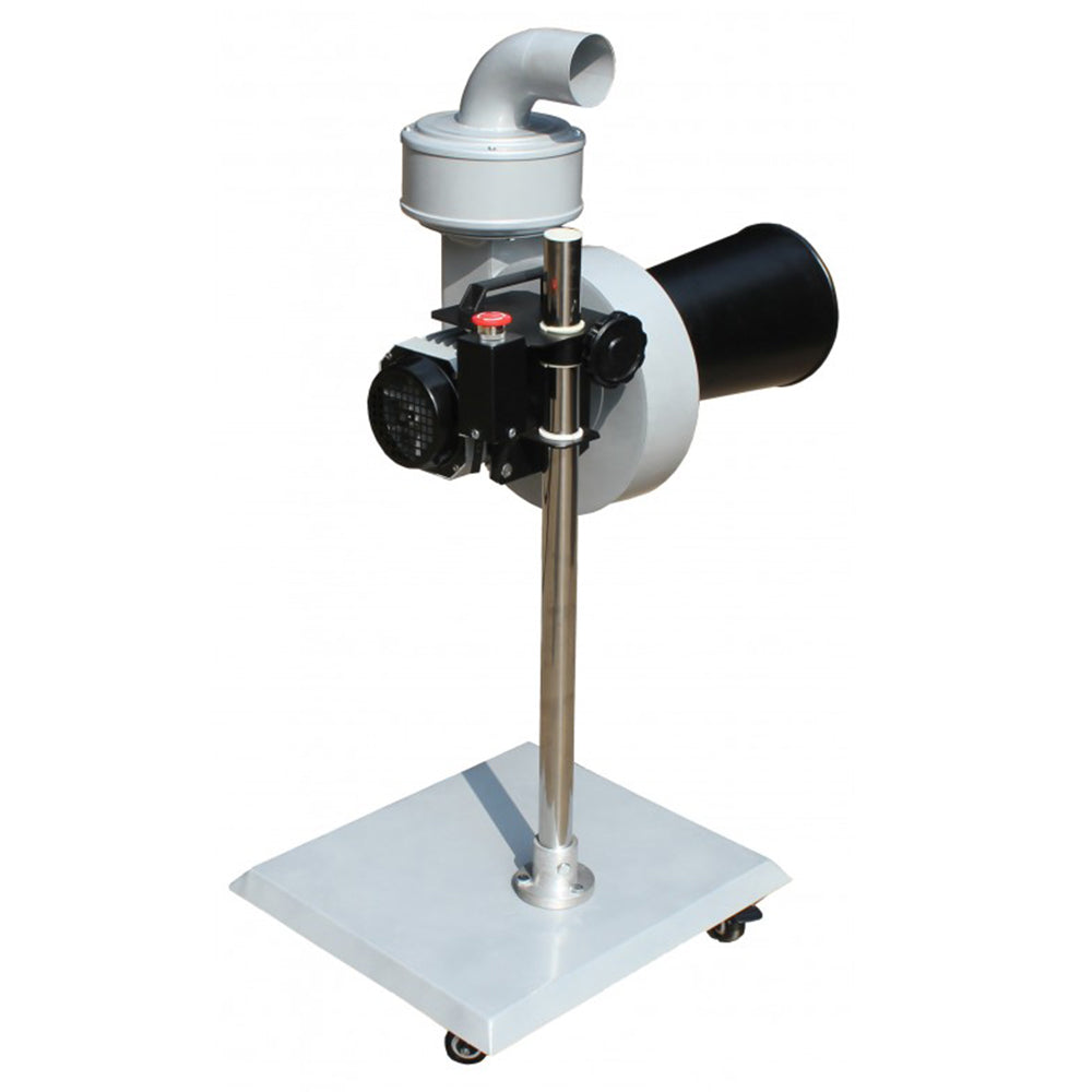 Základňa je namontovaná na vozíku so štyrmi univerzálnymi kolesami (2 ks s brzdou). Mobilná dvojitá odsávacia hadica pre jednu pracovnú stanicu.